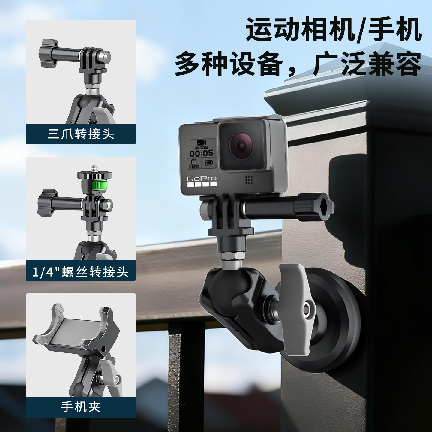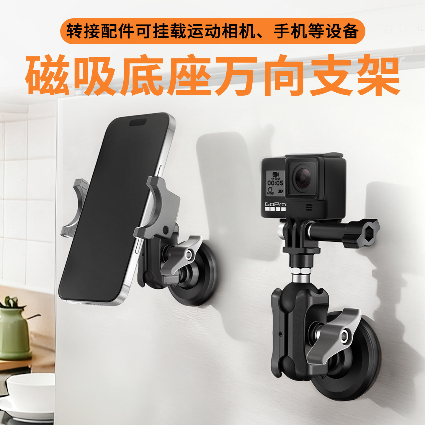 📚 兰帕特磁吸底座固定手机支架健身房拍摄GOPRO支架360运动相机支架
