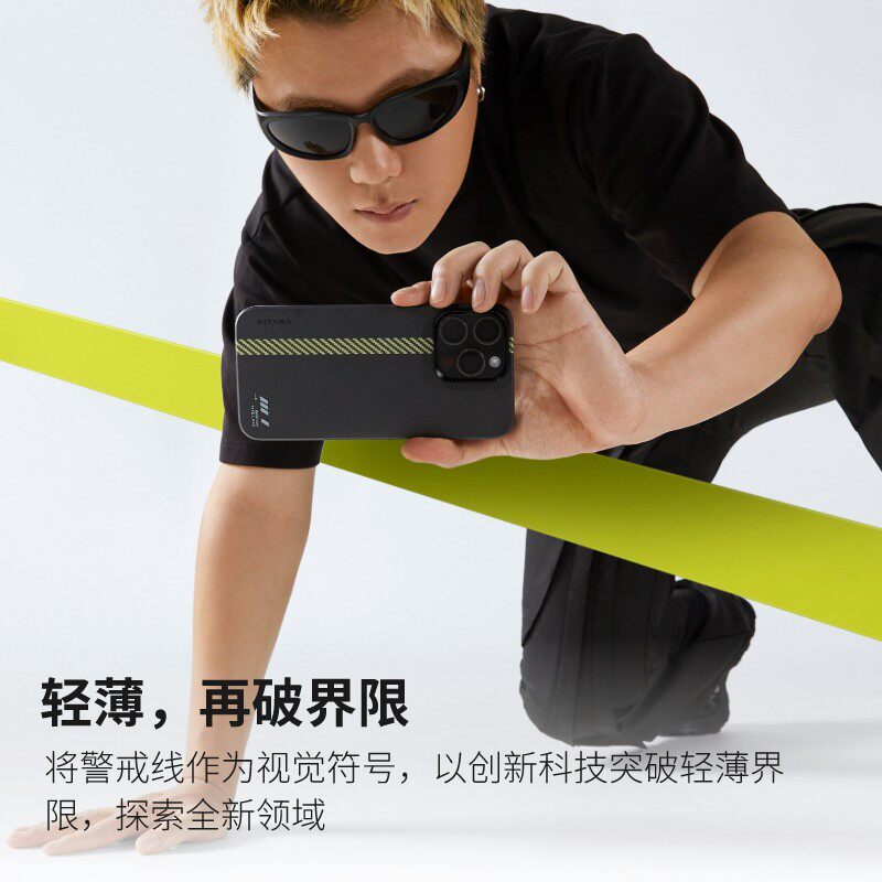 📚 PITAKA适用苹果iPhone15ProMax手机壳警戒线编织壳凯夫拉浮织芳纶超薄裸机感magsafe磁吸手机保护套碳纤维纹