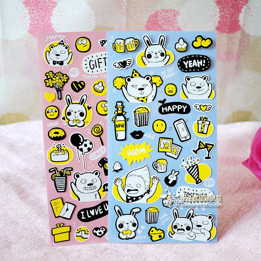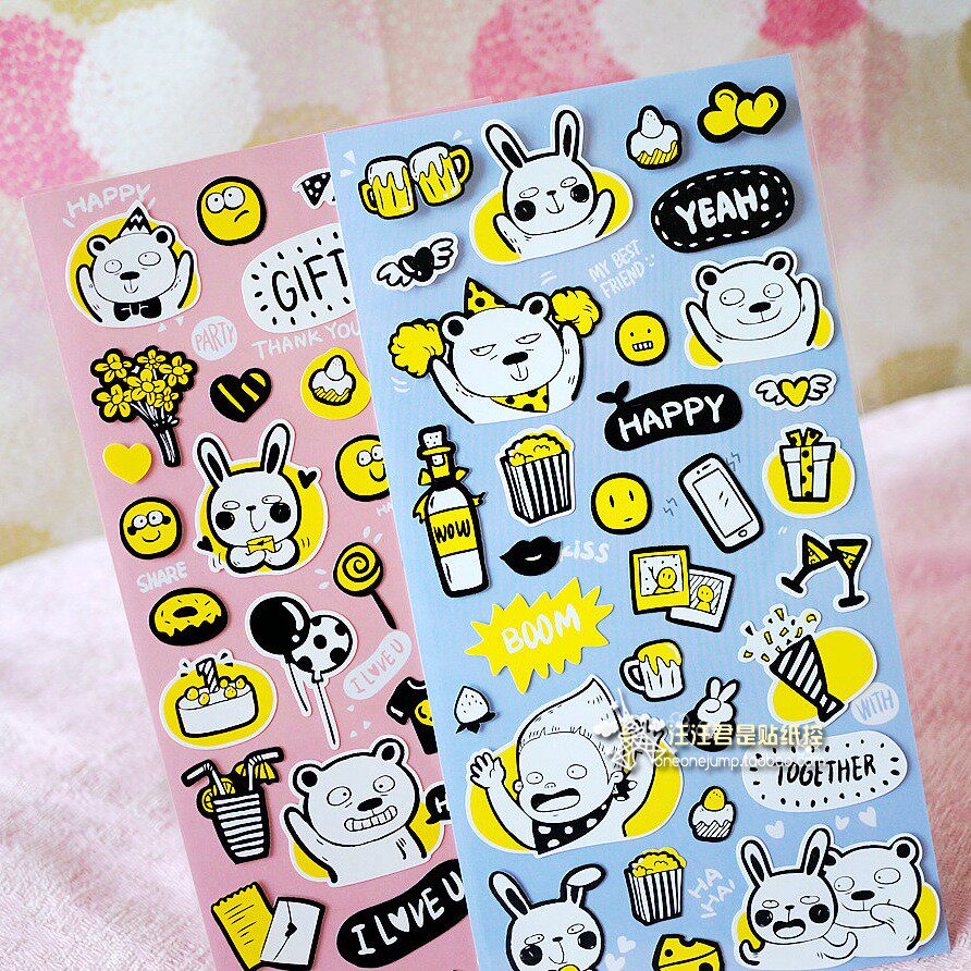 📚 熊兔好基友翻白眼礼物啤酒杯爆米花热气球装饰平面漫画手帐贴纸