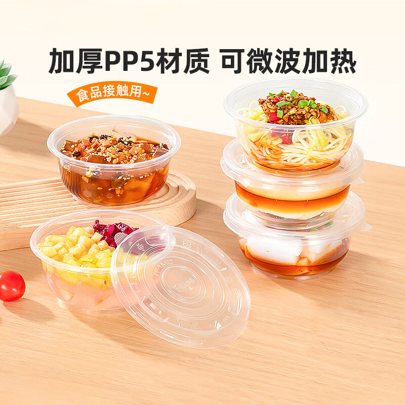 📚 特美居一次性碗家用带盖碗筷套装塑料饭碗食品耐高温打包餐盒小碗
