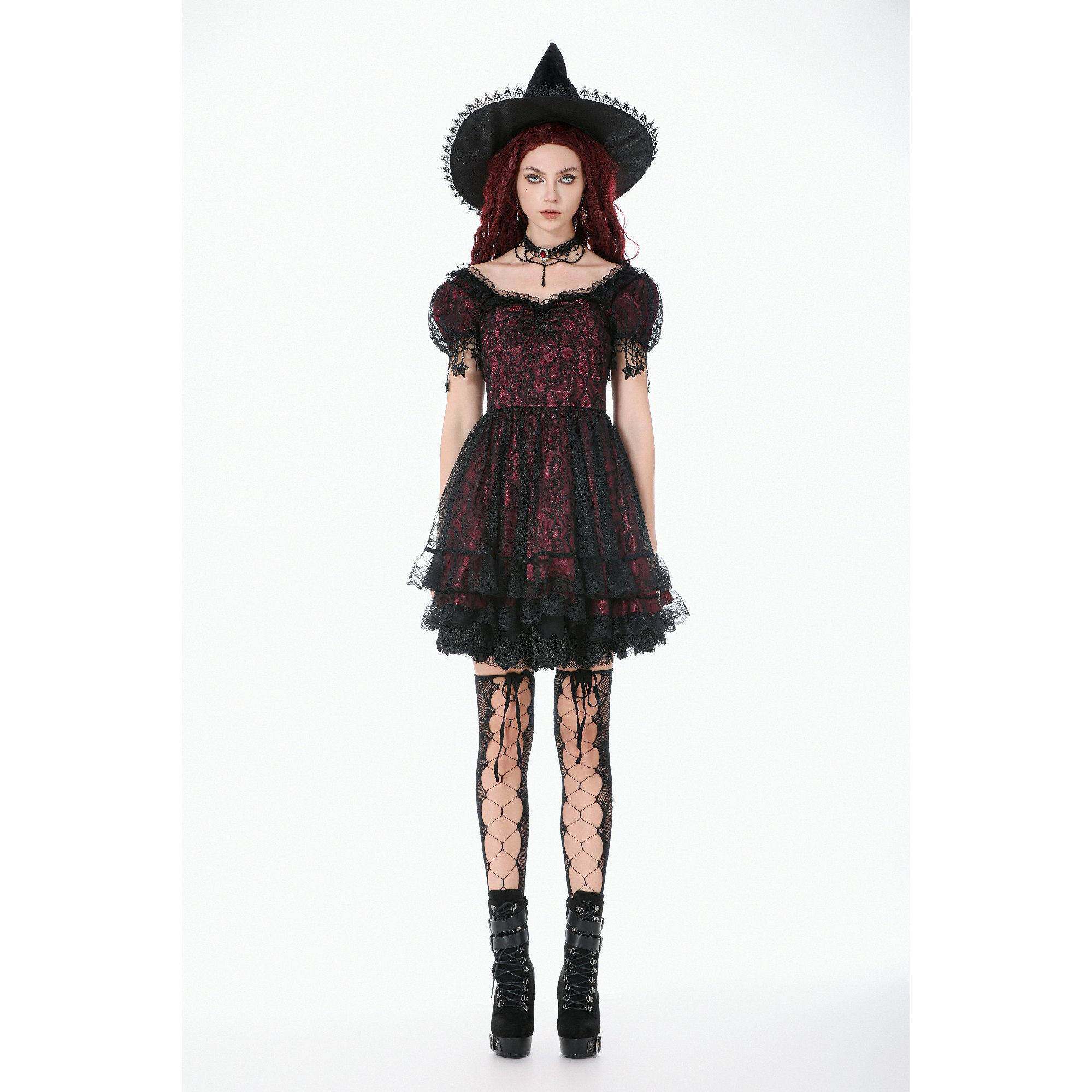 📚 DARK IN LOVE哥特女装红黑蕾丝公主裙DW1160