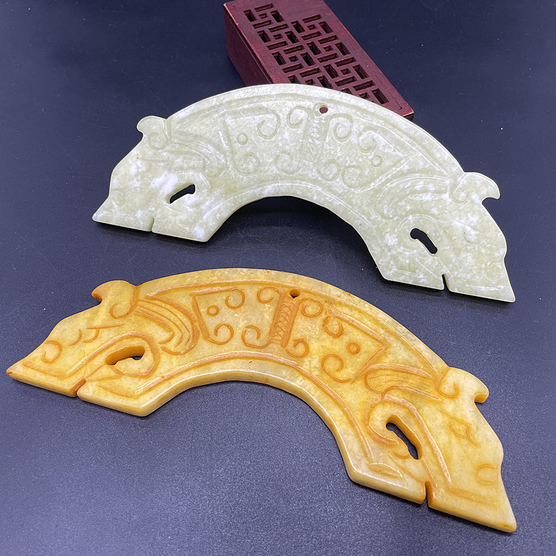 📚 岫玉仿古双龙吊坠挂件玉璜玉璧玉佩腰佩流苏半壁江山古装道具项坠