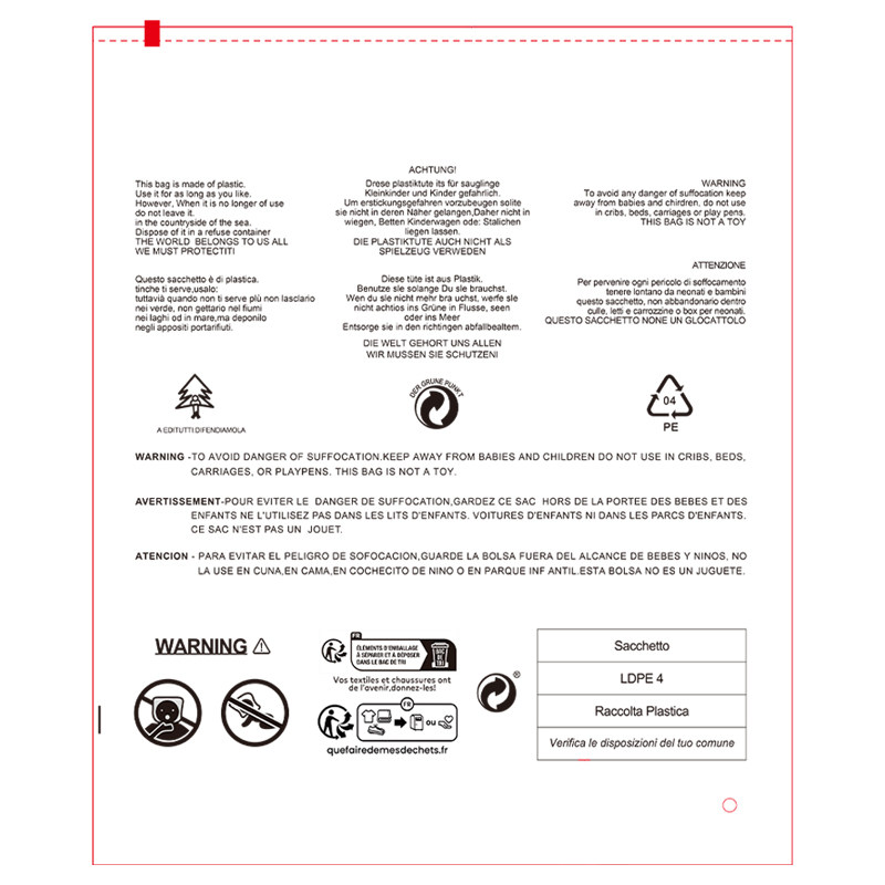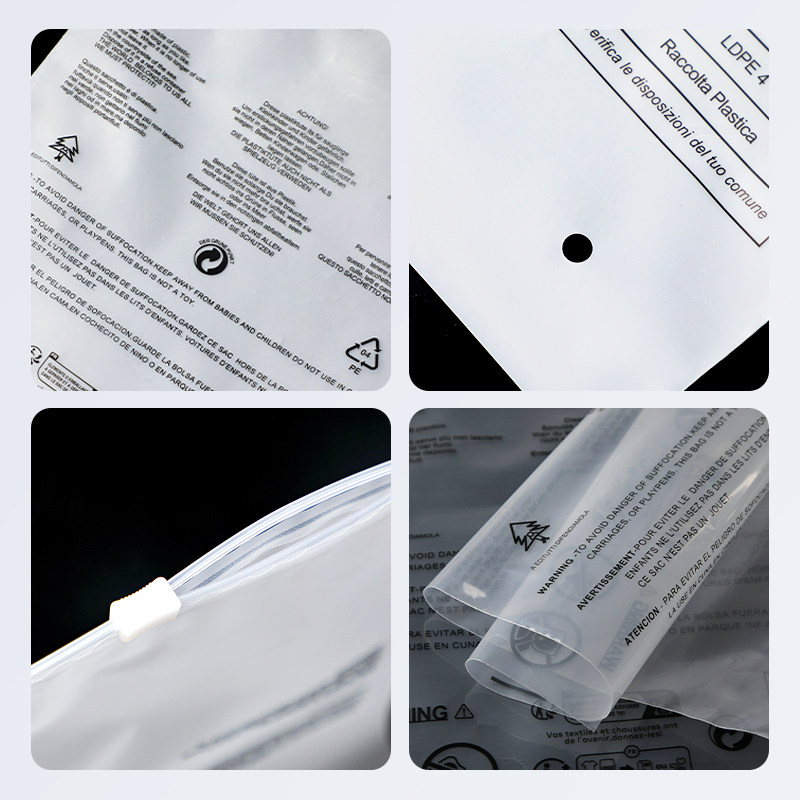 📚 TEMU跨境警告语拉链袋法国环保标打包袋警示语服装袋子衣服包装袋