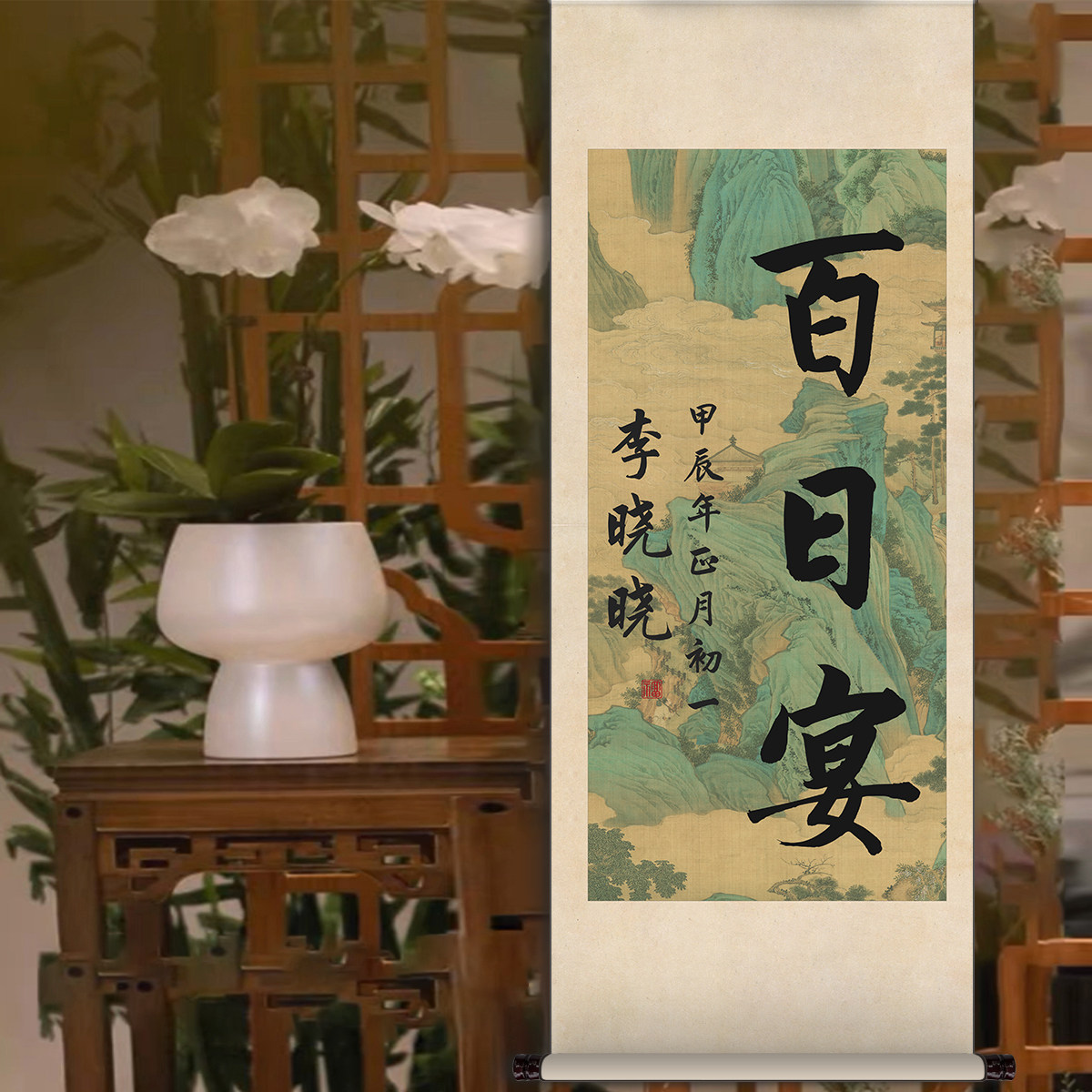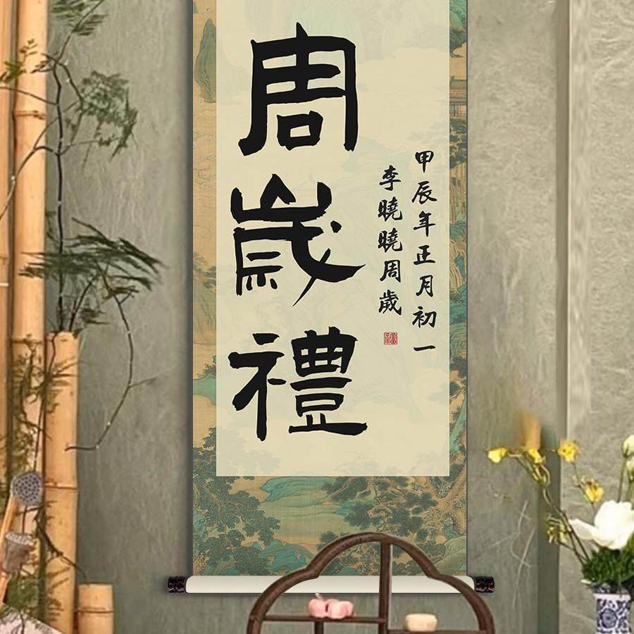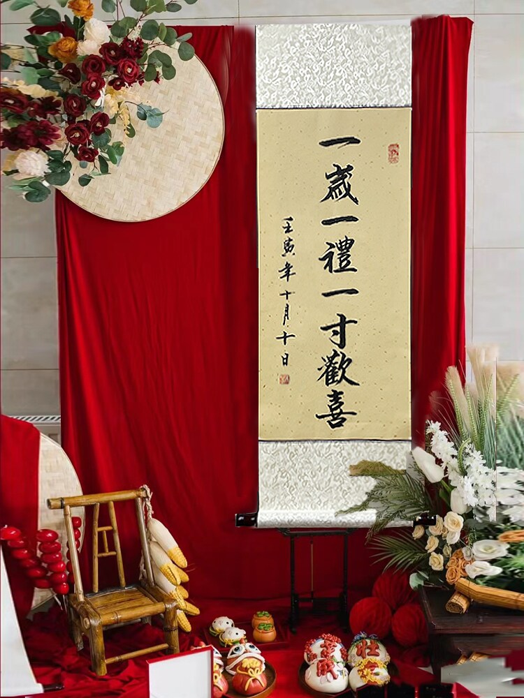 📚 周岁礼挂画卷轴装饰画布置一岁一礼一寸欢喜周岁脚印书法字画定制
