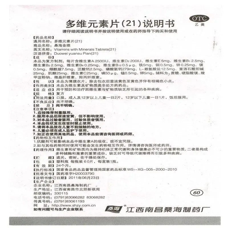 📚 桑海多维元素片60片/盒多种维生素矿物质预防疾病21种营养元素