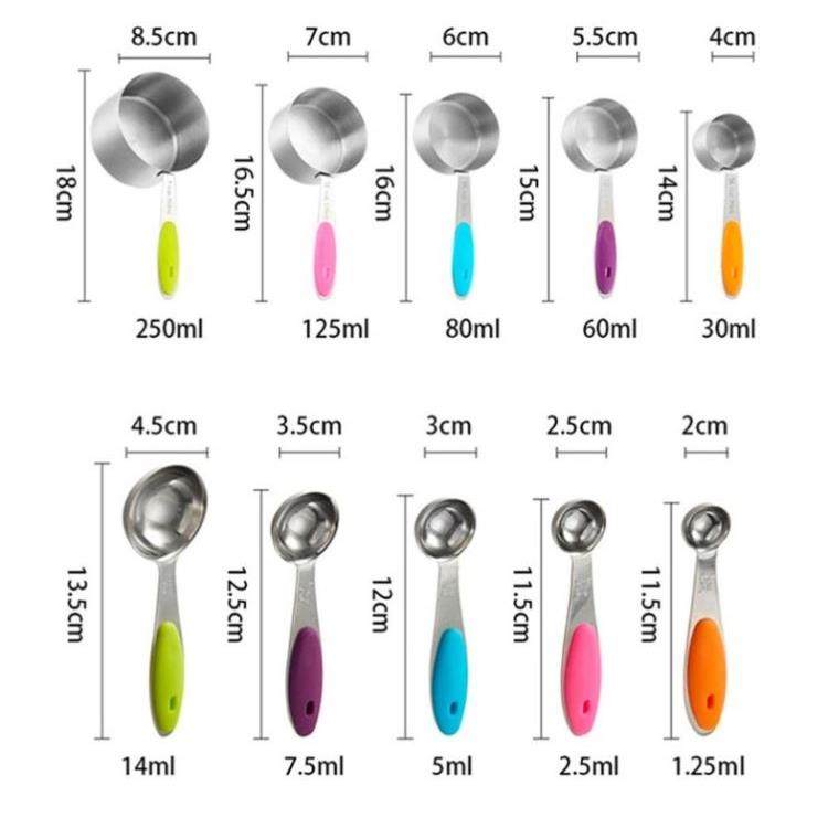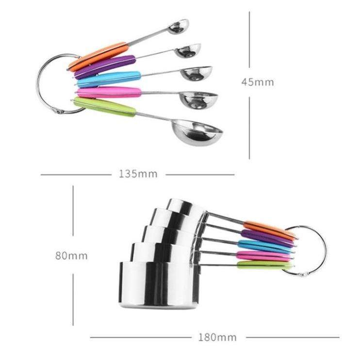 📚 Stainless Steel Measuring Cups Spoon Set彩色烘焙量勺量杯10件