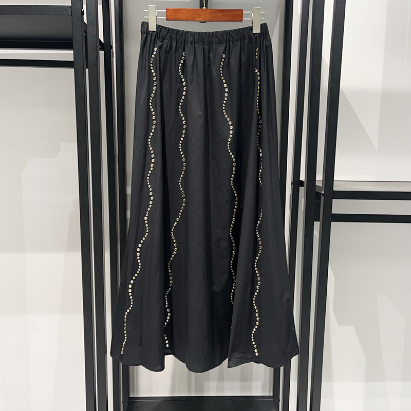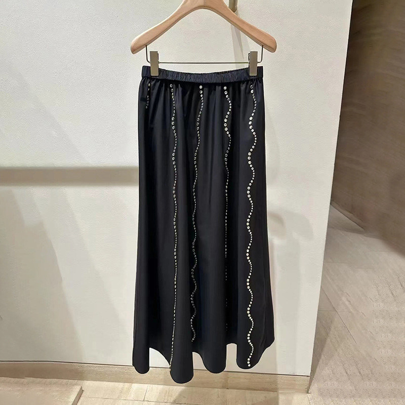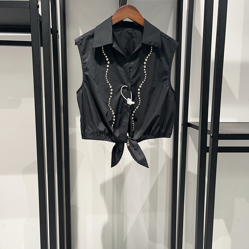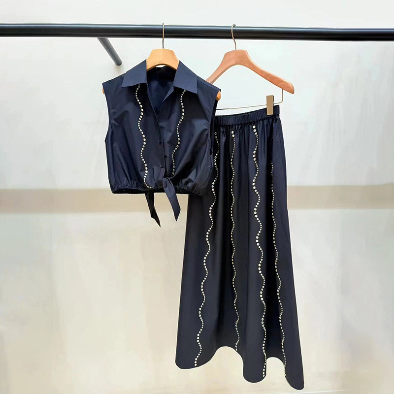 📚 法单S家 2025夏季新款钻饰水波纹无袖打结收腰衫大裙摆半裙套装
