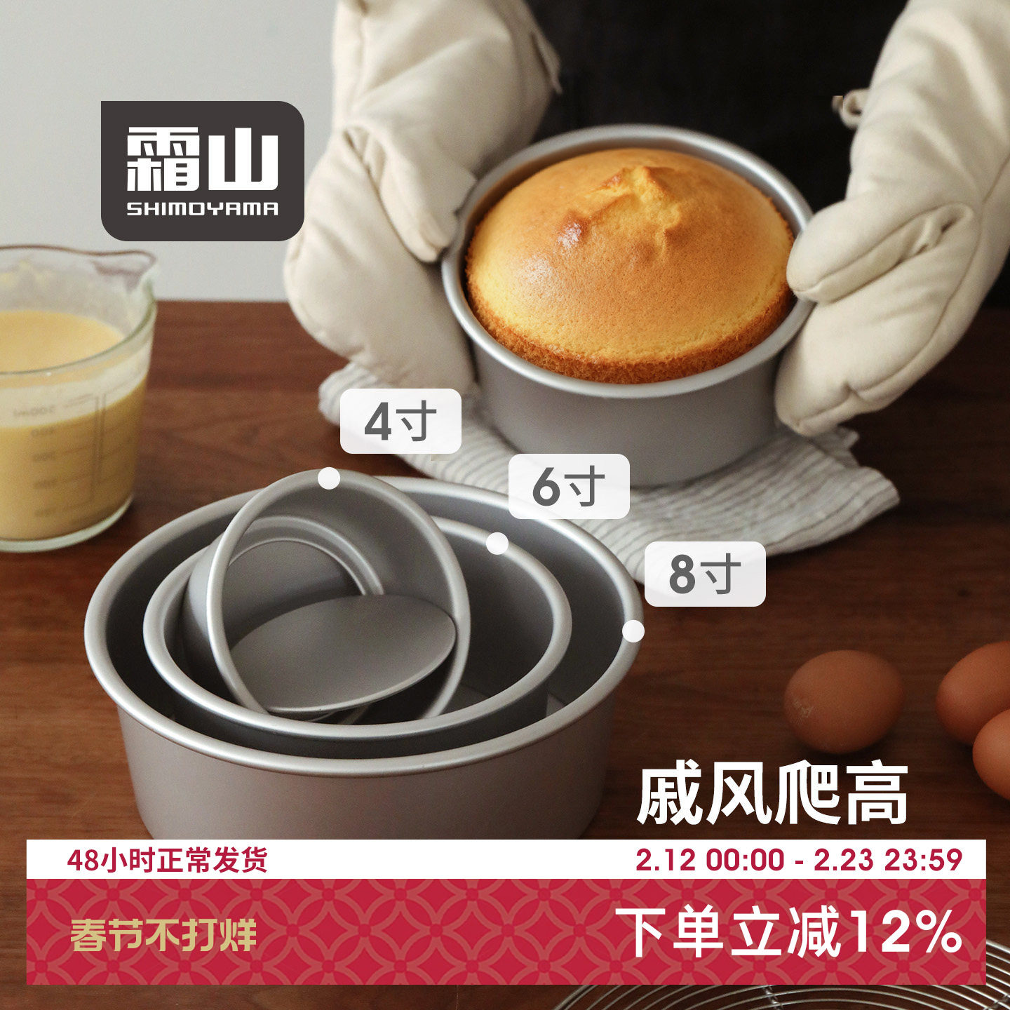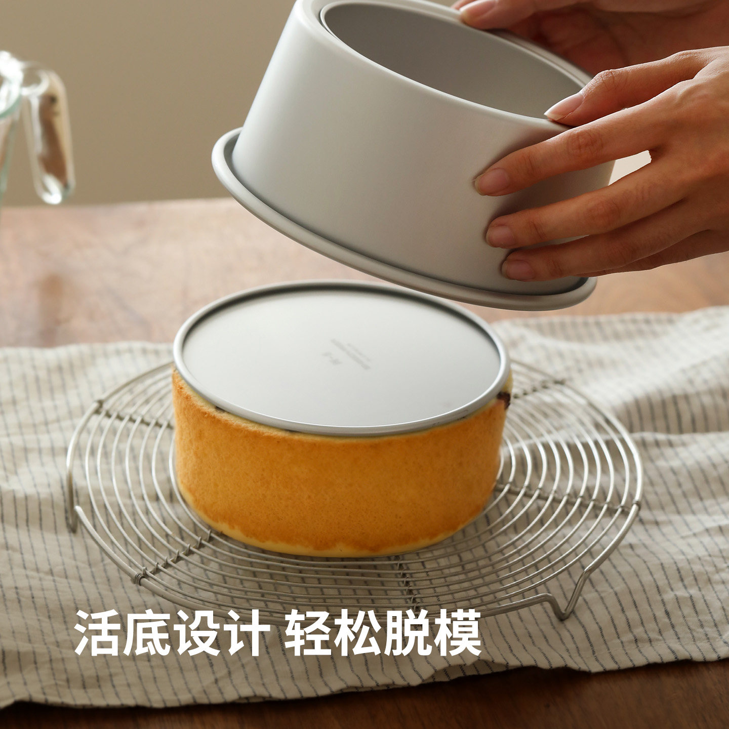 📚 霜山戚风模具家用烤箱阳极4寸6寸八寸活底烘焙工具圆形烤蛋糕胚模
