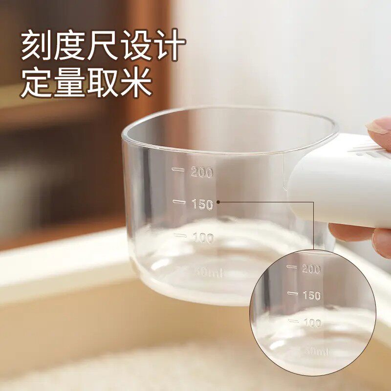 📚 多功能控量舀米勺家用五谷杂粮勺子厨房创意挖面勺带刻度量米勺