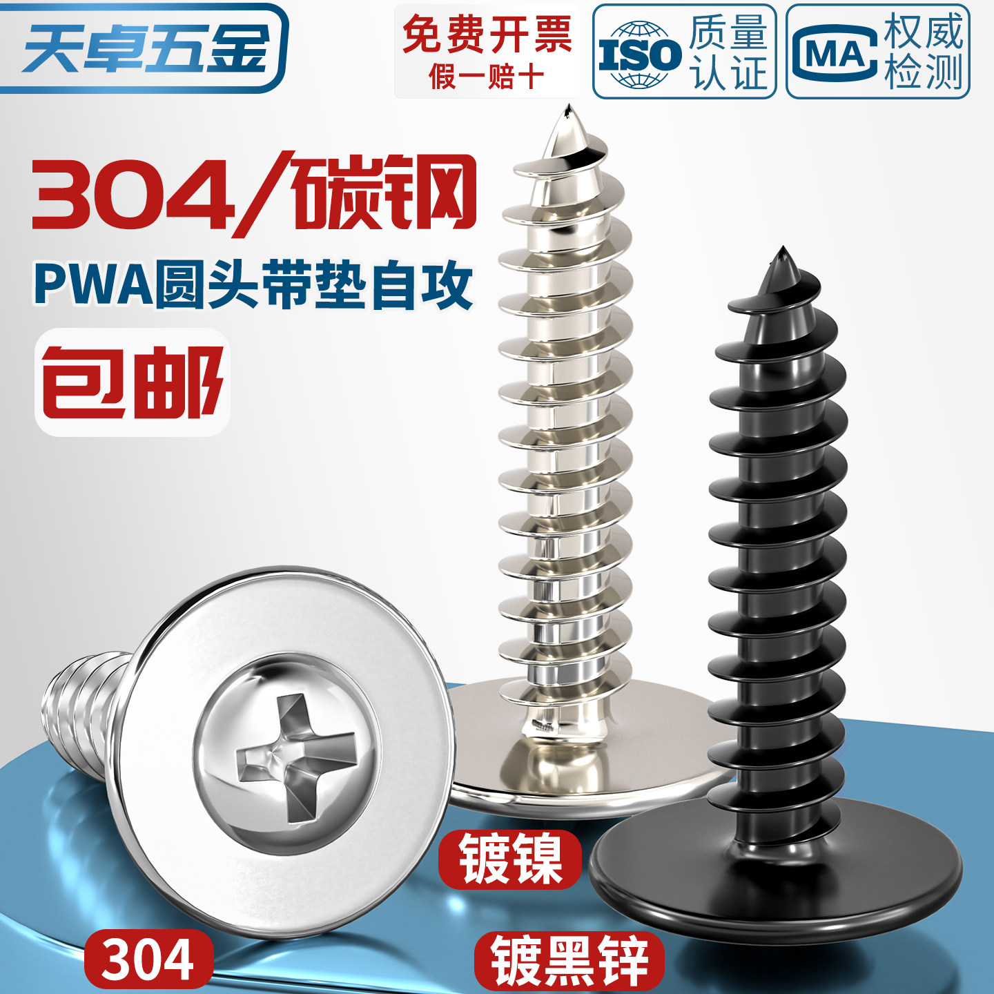 📚 PWA大帽带垫自攻螺丝加大垫片大头十字圆头带介小螺钉M2M2.3M3M4