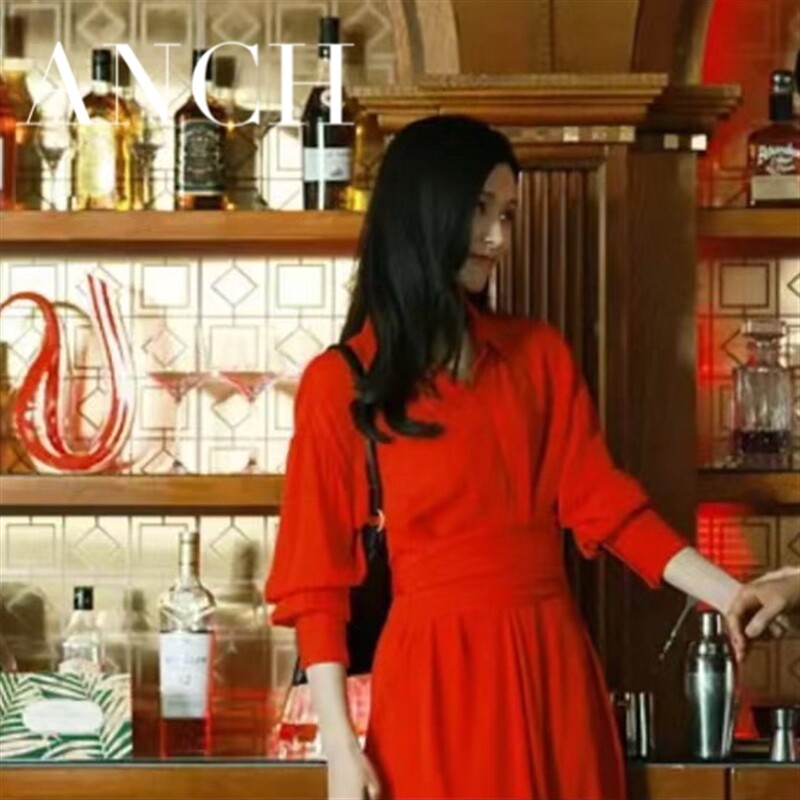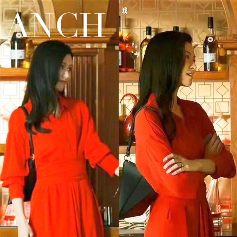 📚 香港欧洲消失的她李木子文咏珊同款红色衬衫连衣裙长袖收腰字裙夏