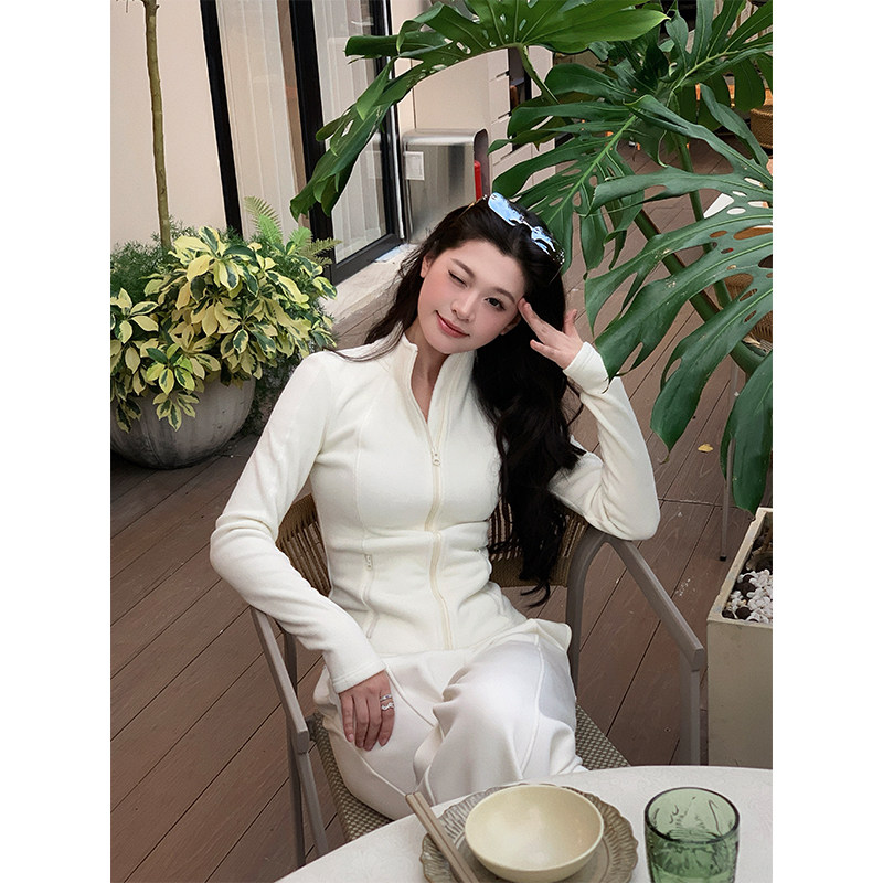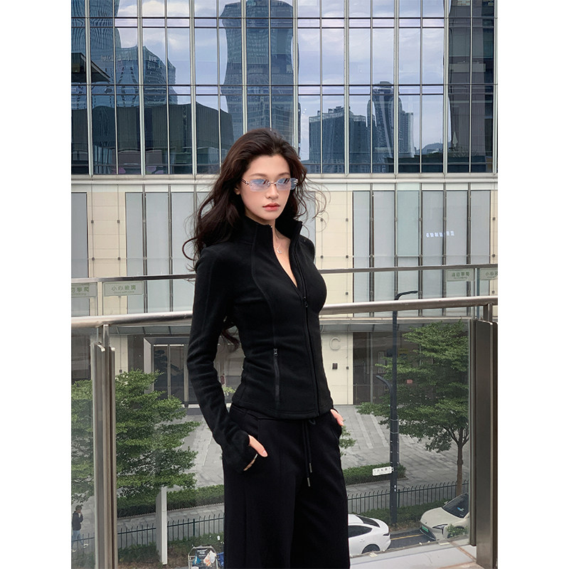 📚 六指导 暖冬寄语 简约立领外套女加绒保暖修身显瘦通勤百搭上衣