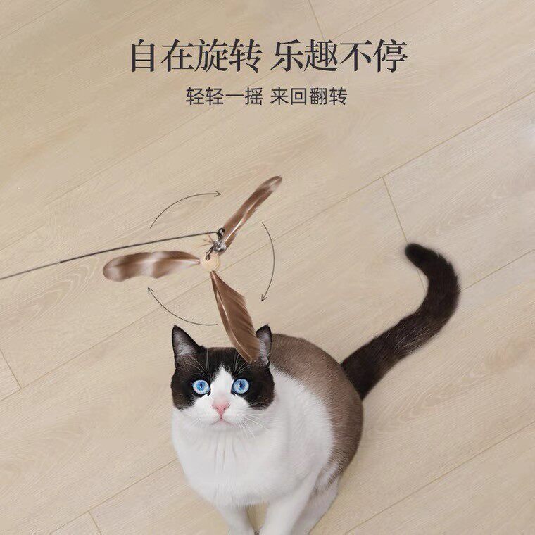 📚 【猫咪最爱】福丸逗猫棒猫咪玩具旋转竹蜻蜓钢丝原生羽毛猫咪