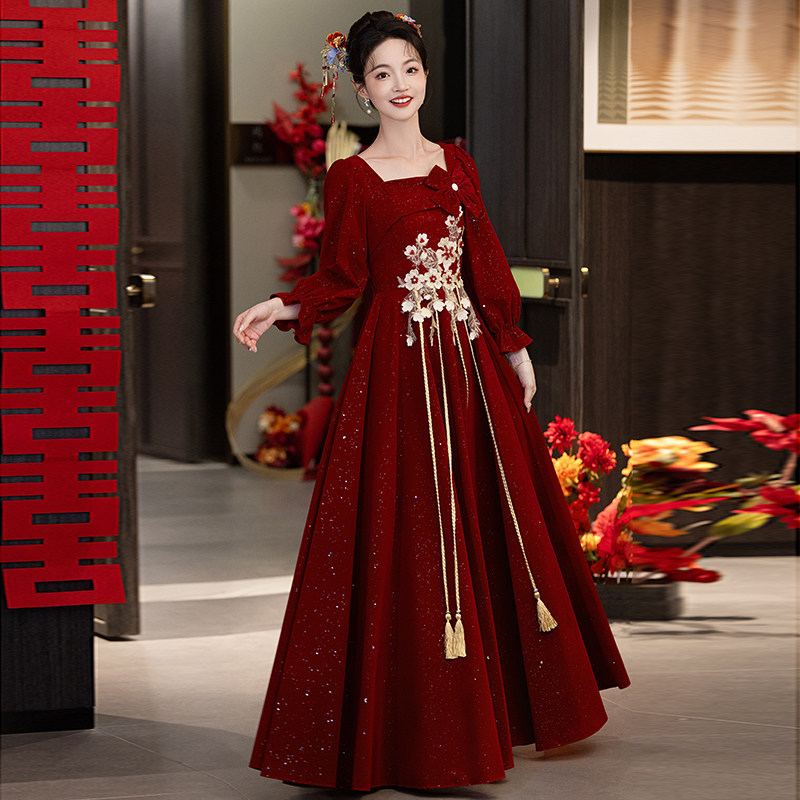 👑今日入手的心头好,一款令人惊艳的大码敬酒服新娘冬季高级感订婚结婚便装连衣裙,让我彻底沦陷!👸