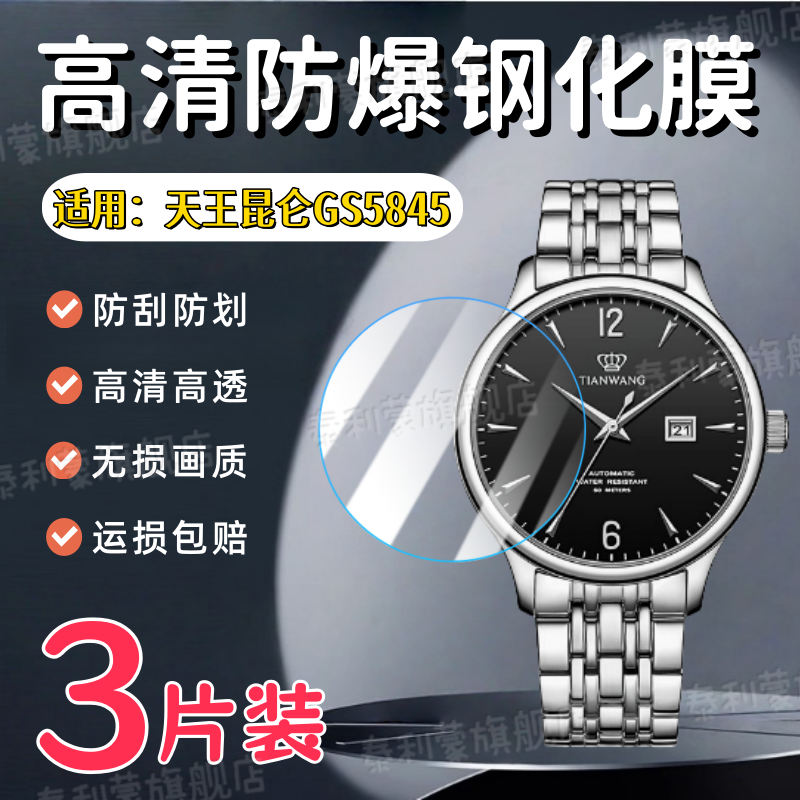 📚 适用天王表昆仑系列GS5845手表钢化膜41.5MM圆形表盘屏幕高清保护膜5845商务机械腕表防刮水凝护眼软膜