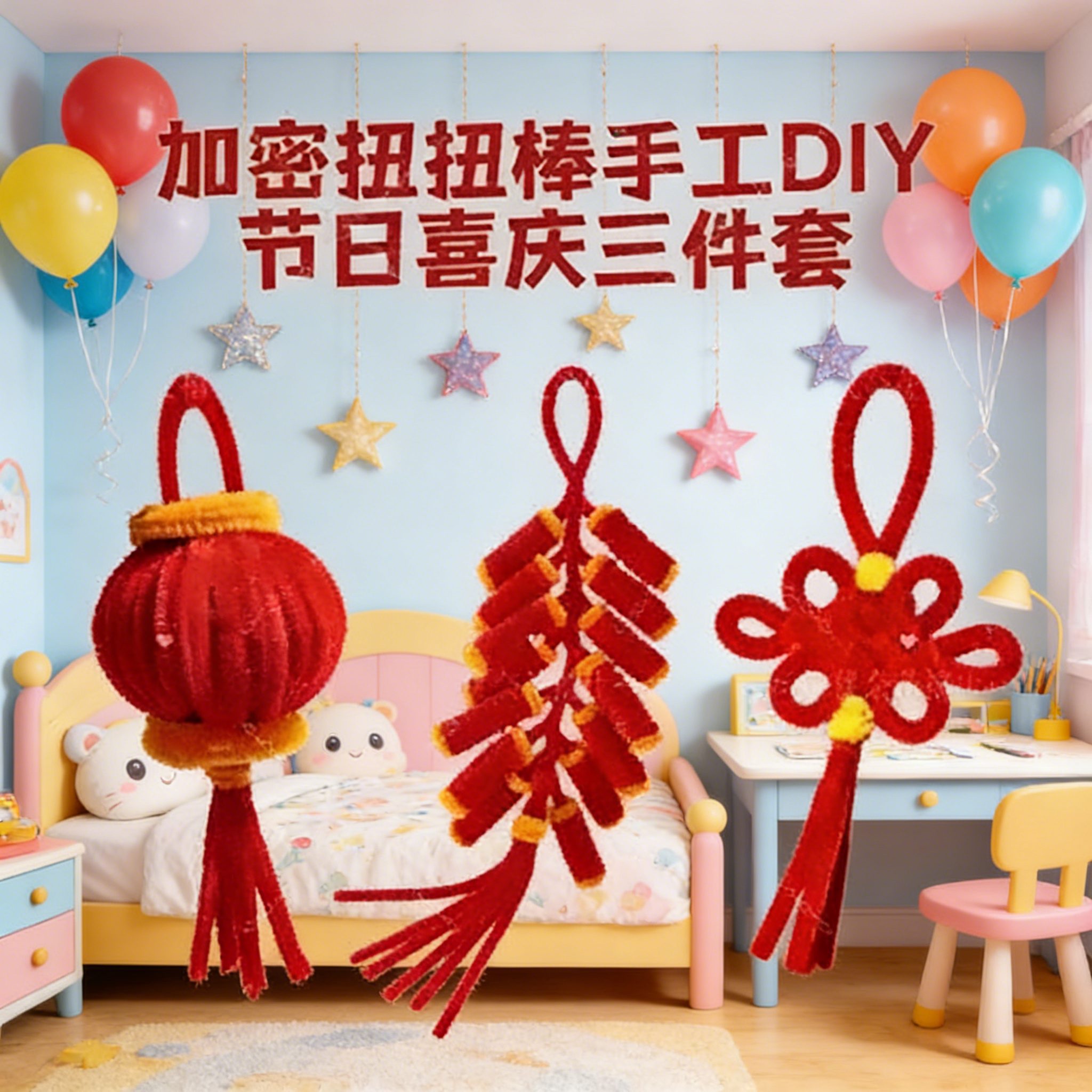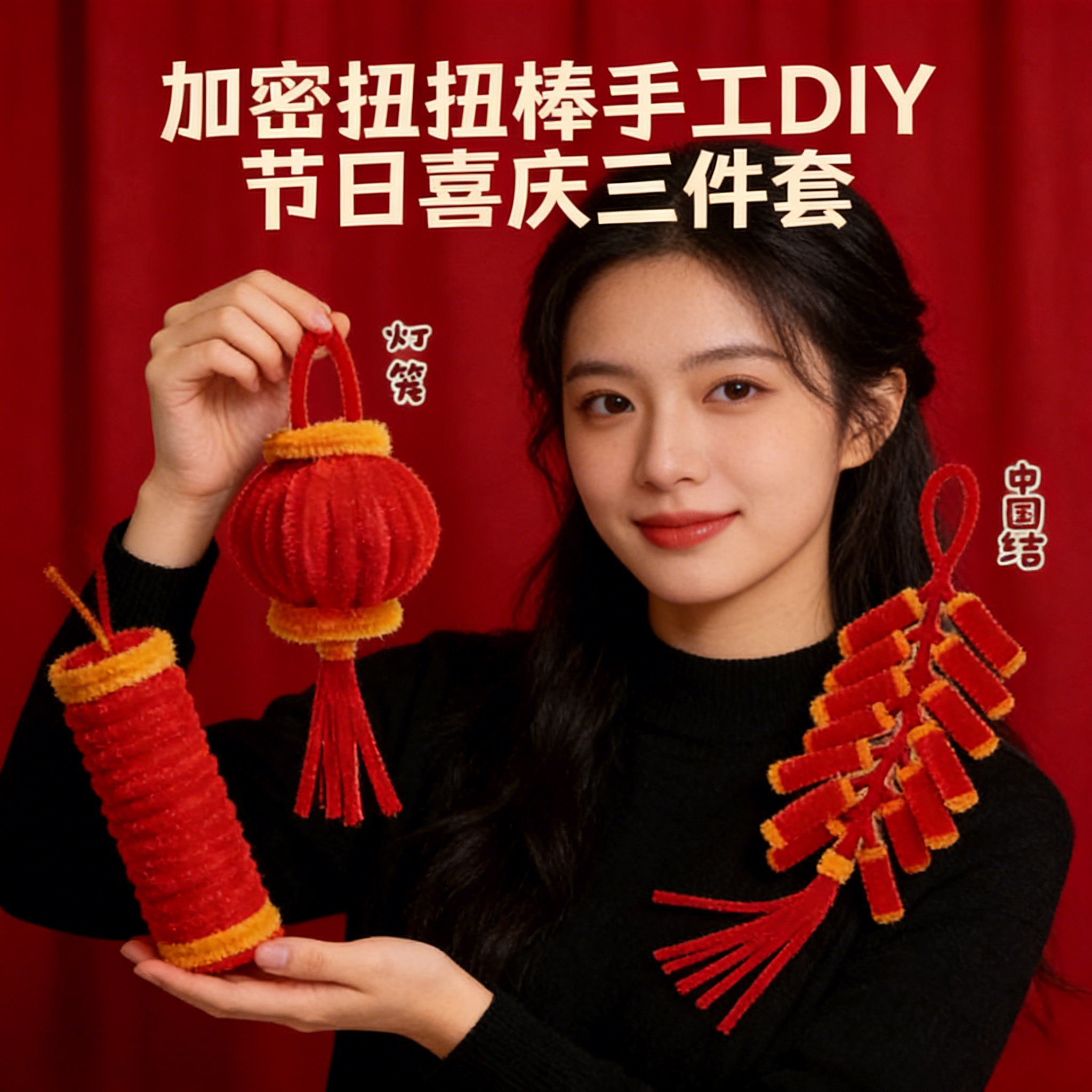 📚 中国风扭扭棒加密扭扭棒灯笼鞭炮中国结挂件手工diy材料包春节新