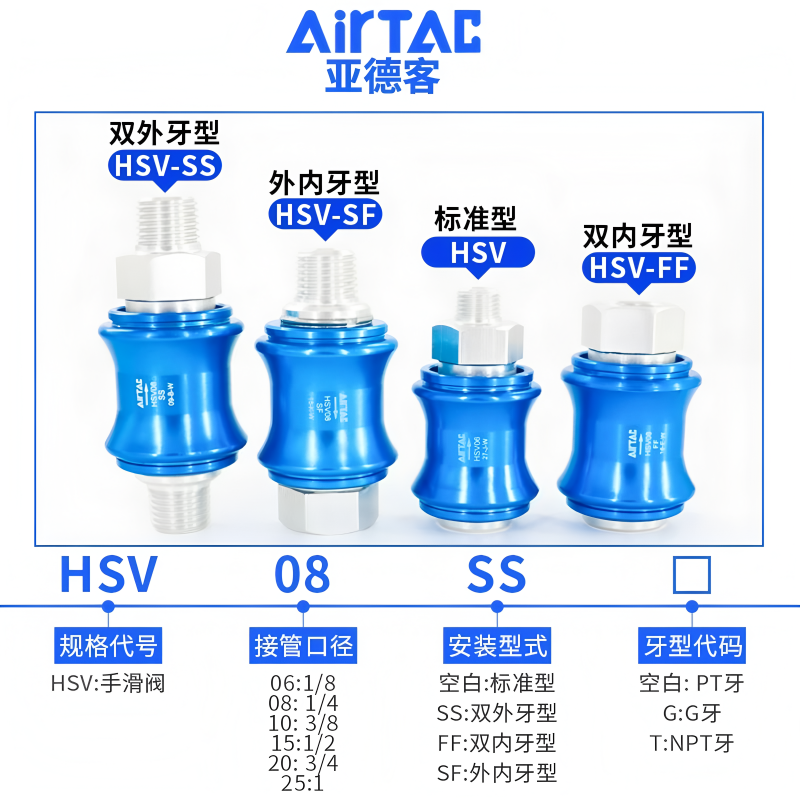 📚 亚德客手滑阀HSV-08 HSV-06 HSV-10 HSV-15/20 SF FF SS手推阀