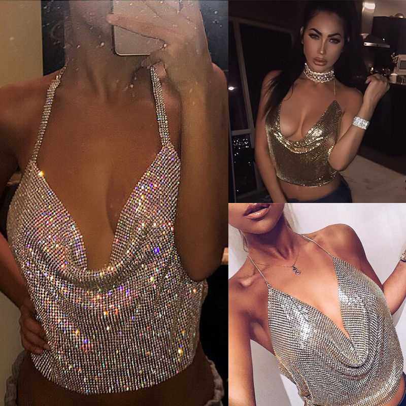 📚 Summer Women Elegant Sexy Shiny Metal Texture Suspender Top