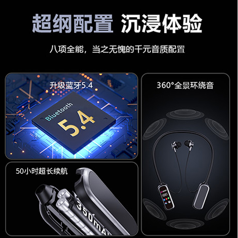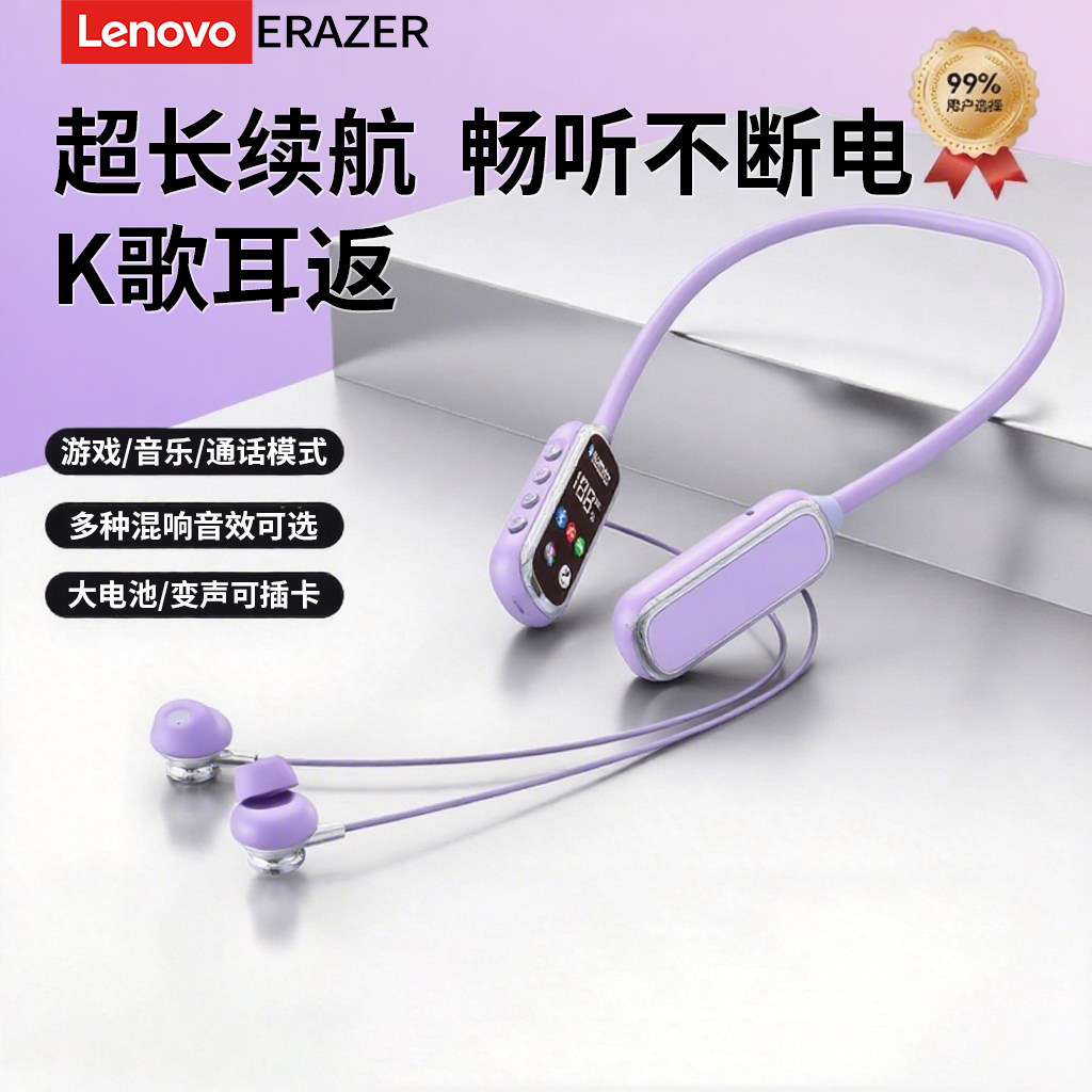 📚 联想异能者挂脖式蓝牙耳机直播无线耳返运动降噪插卡长续航EQ100