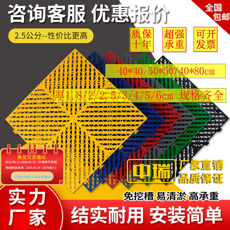 📚 厚2.5公分洗车房地格栅浴室厕所防滑地垫网格排水垫塑料拼接地板