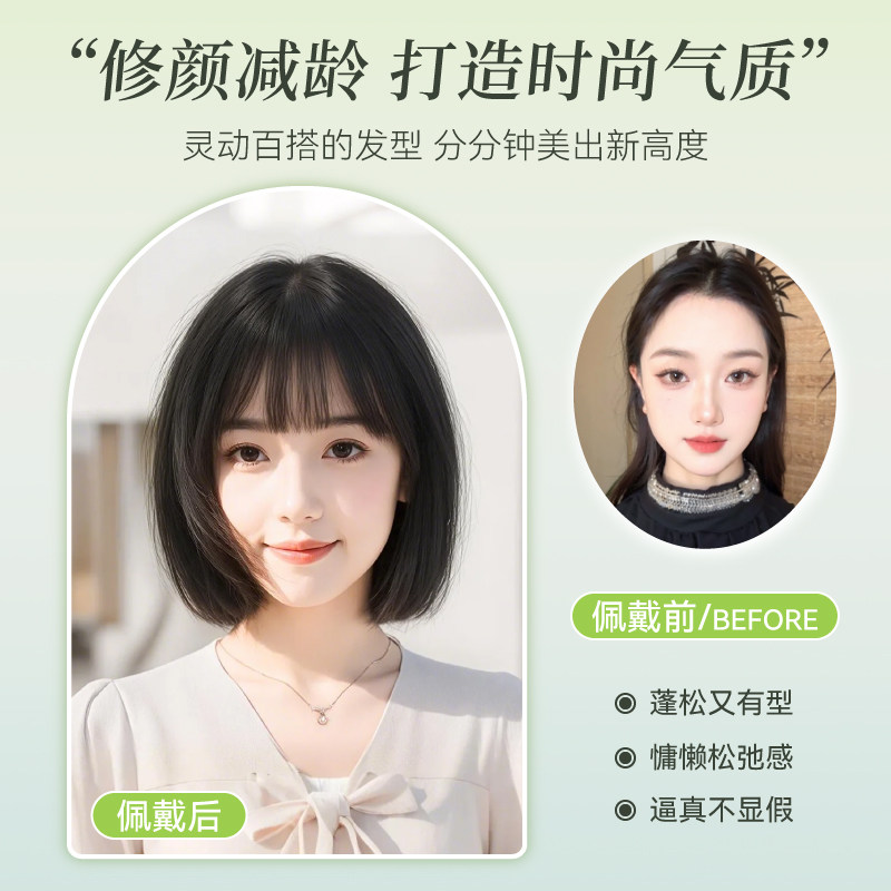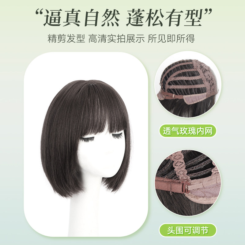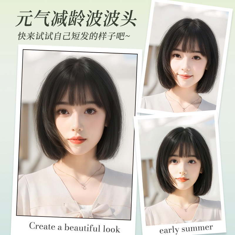 📚 假发女短发自然全头套式仿真人发丝减龄波波头黑色日常整顶假发套