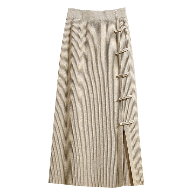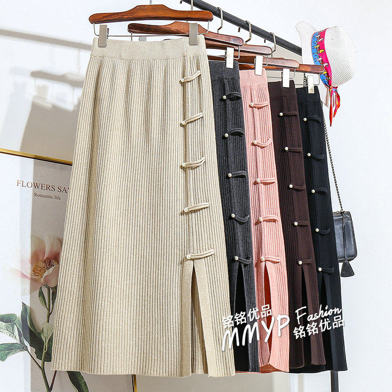📚 2025冬季新中式国风盘扣针织半身裙女秋冬直筒小个子裙子半裙长裙