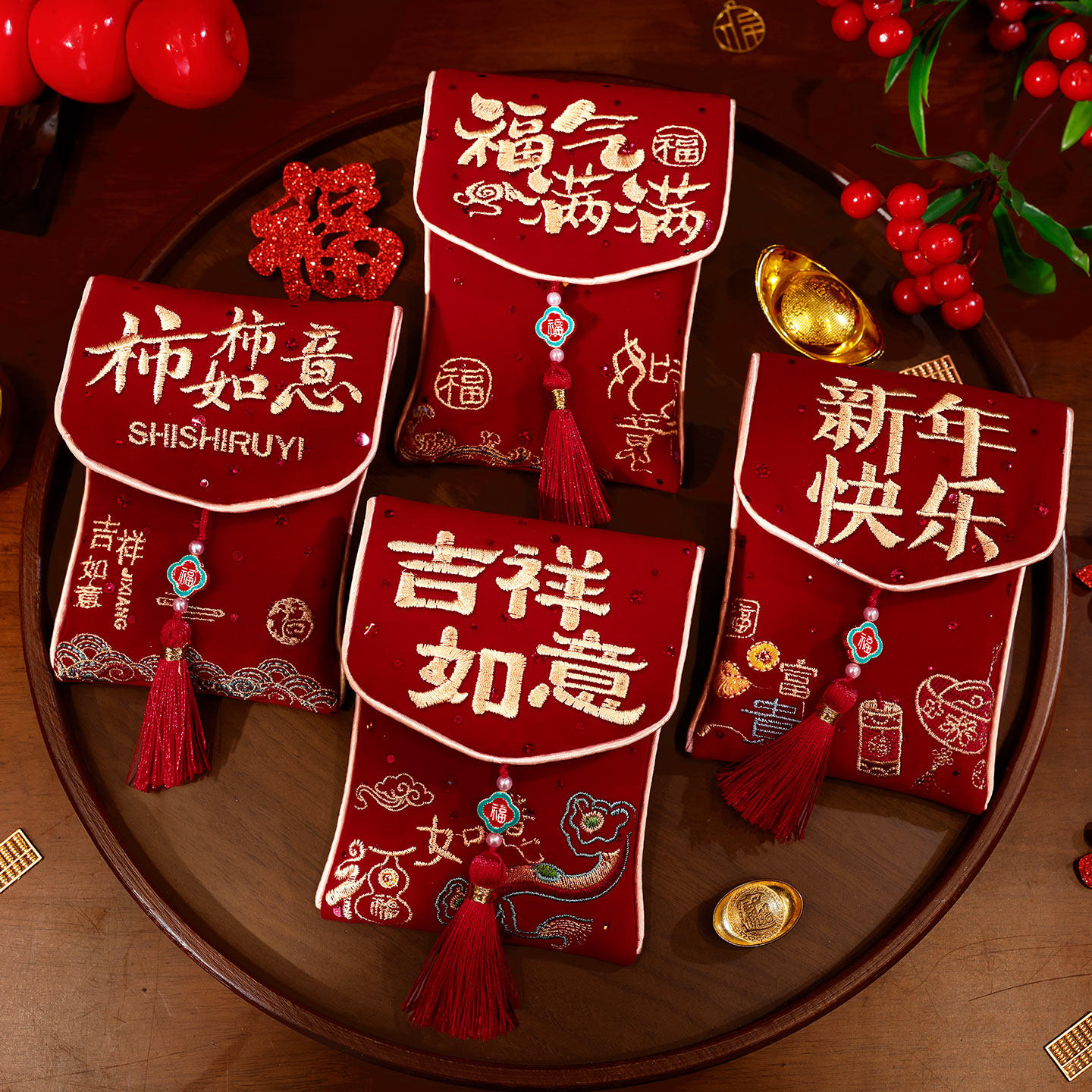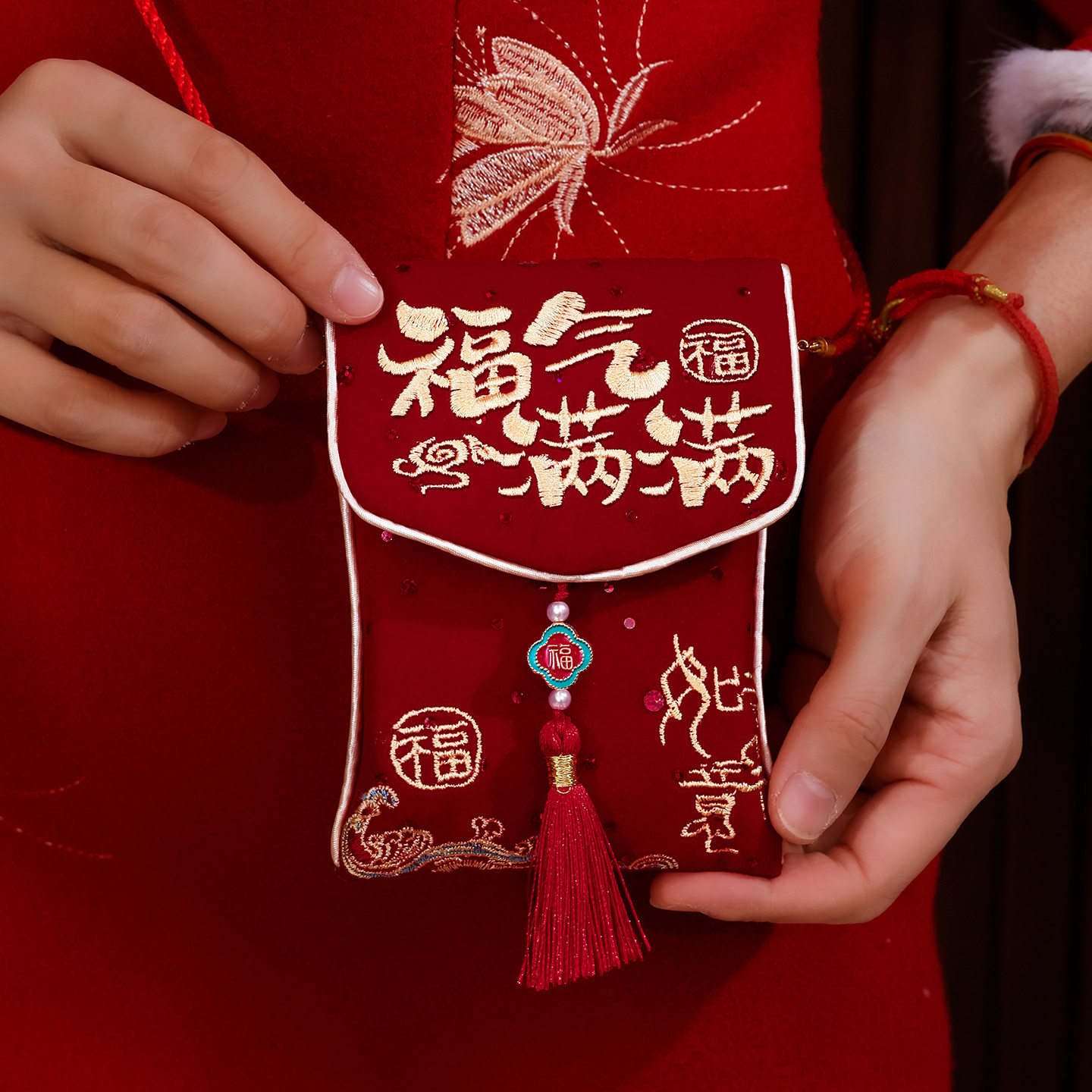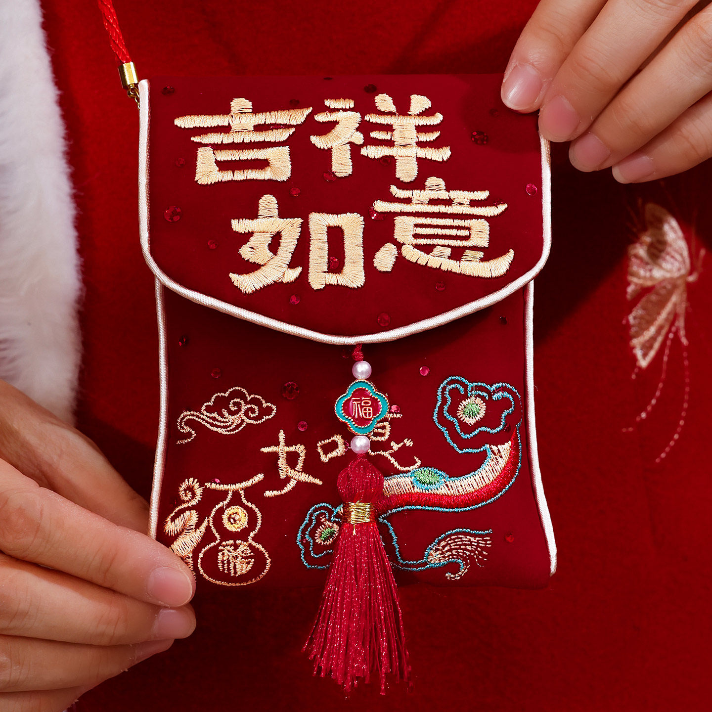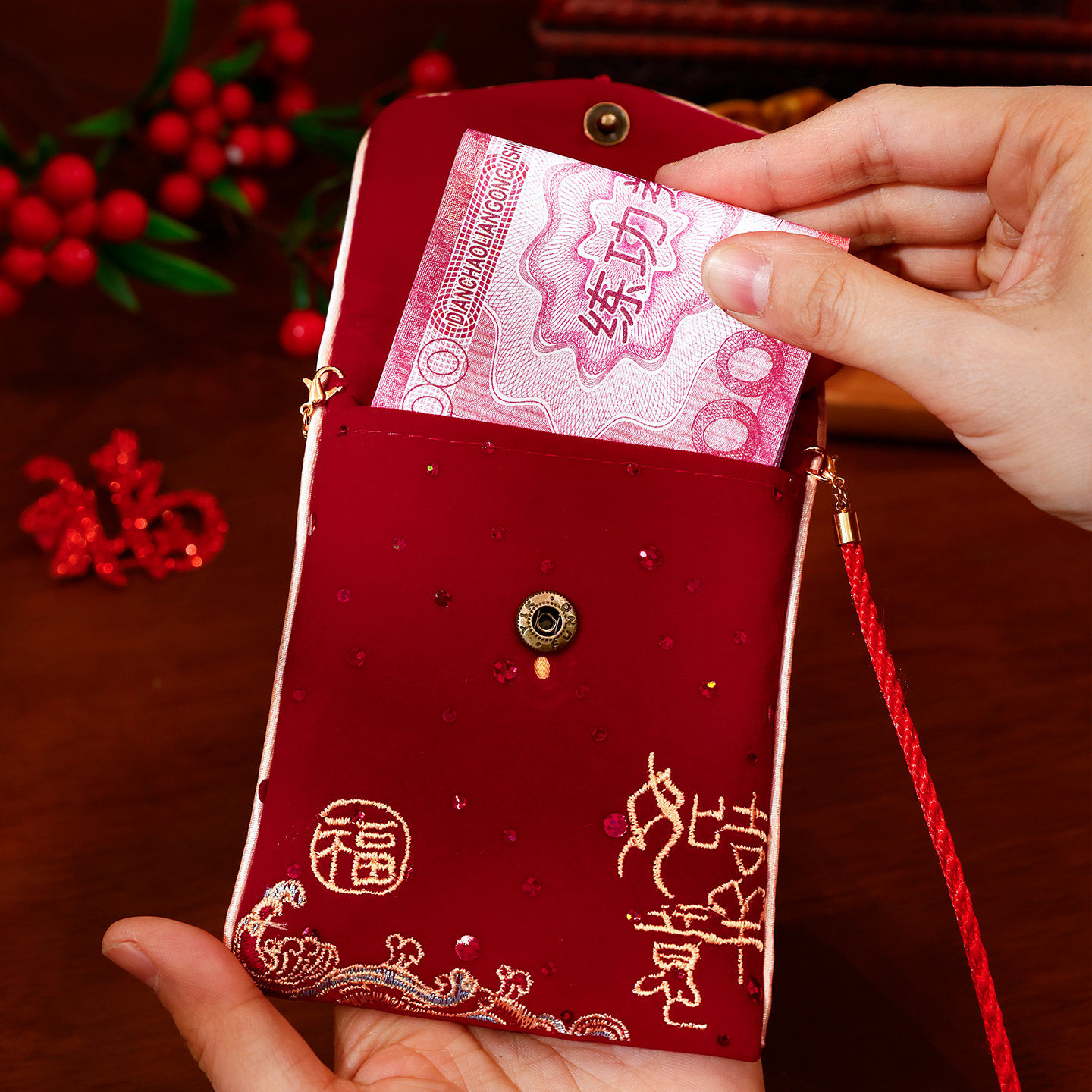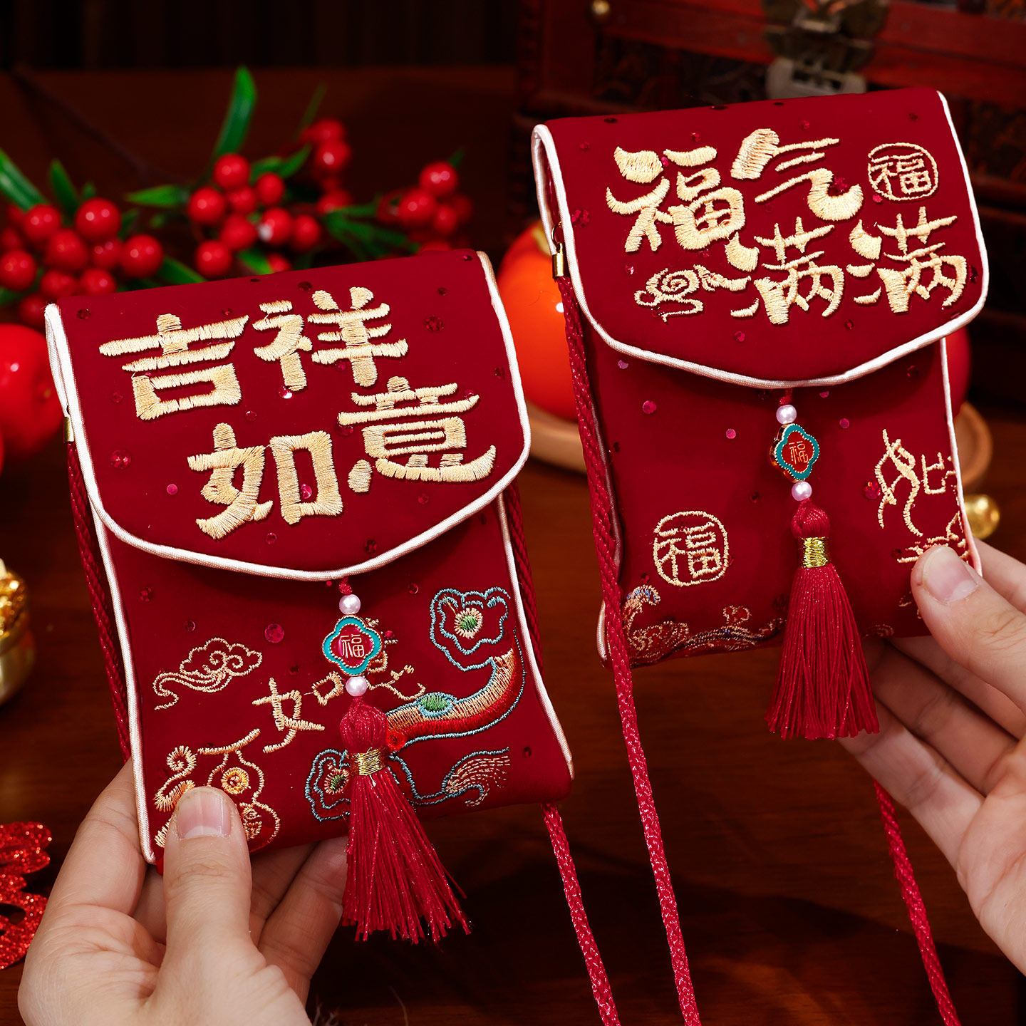 📚 2026新款布艺红包春节过年儿童压岁包可斜挎钱包红色福袋利是包