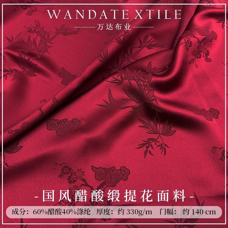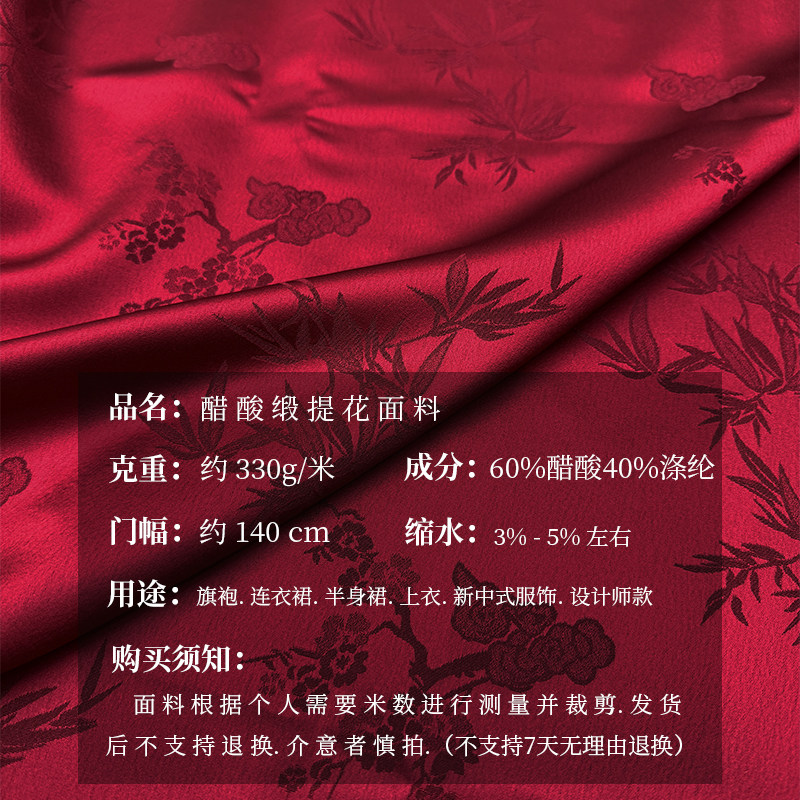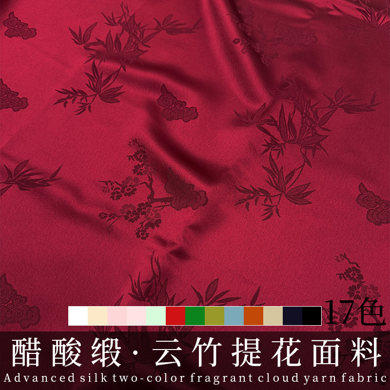📚 春夏云竹三醋酸提花布料国风缎面新中式马甲上衣外套旗袍裙子面料