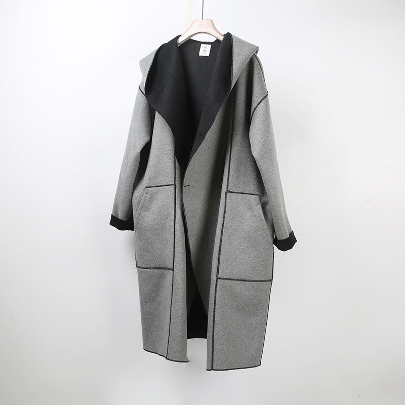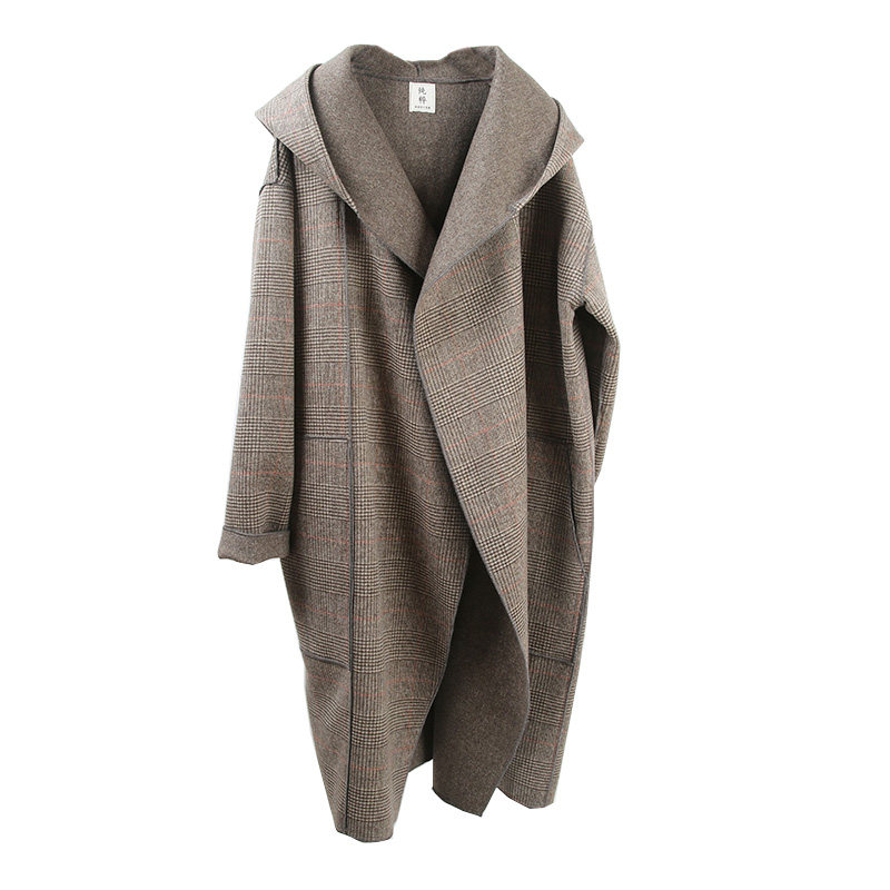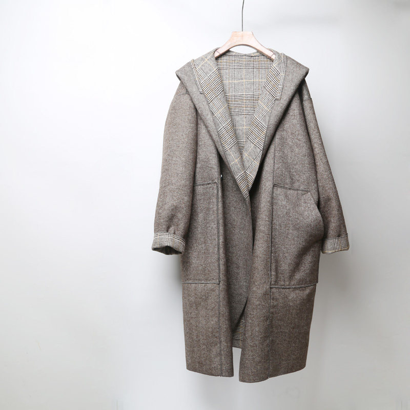 📚 连帽双面羊绒大衣男2022新款复古英伦格纹双面呢带帽中长款外套