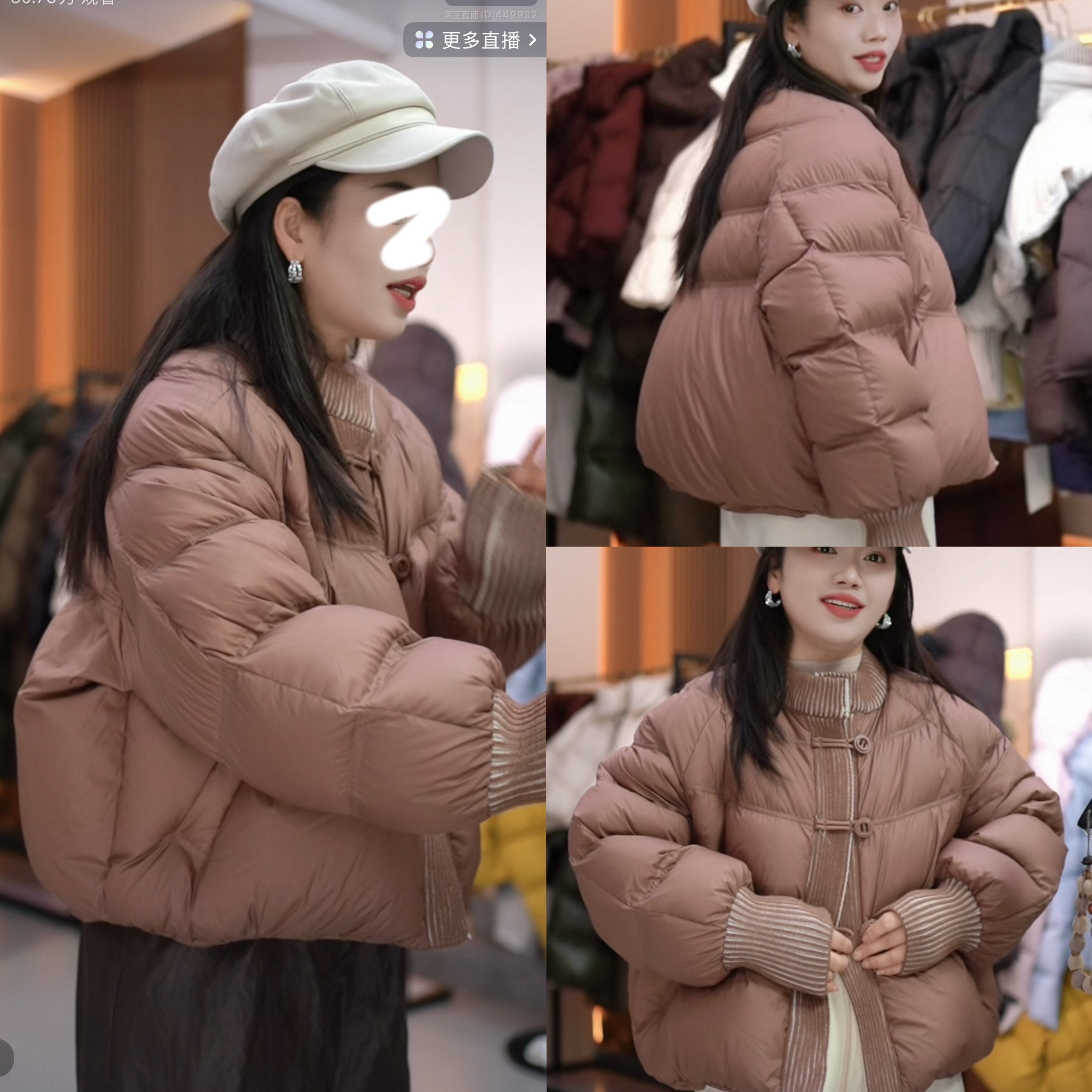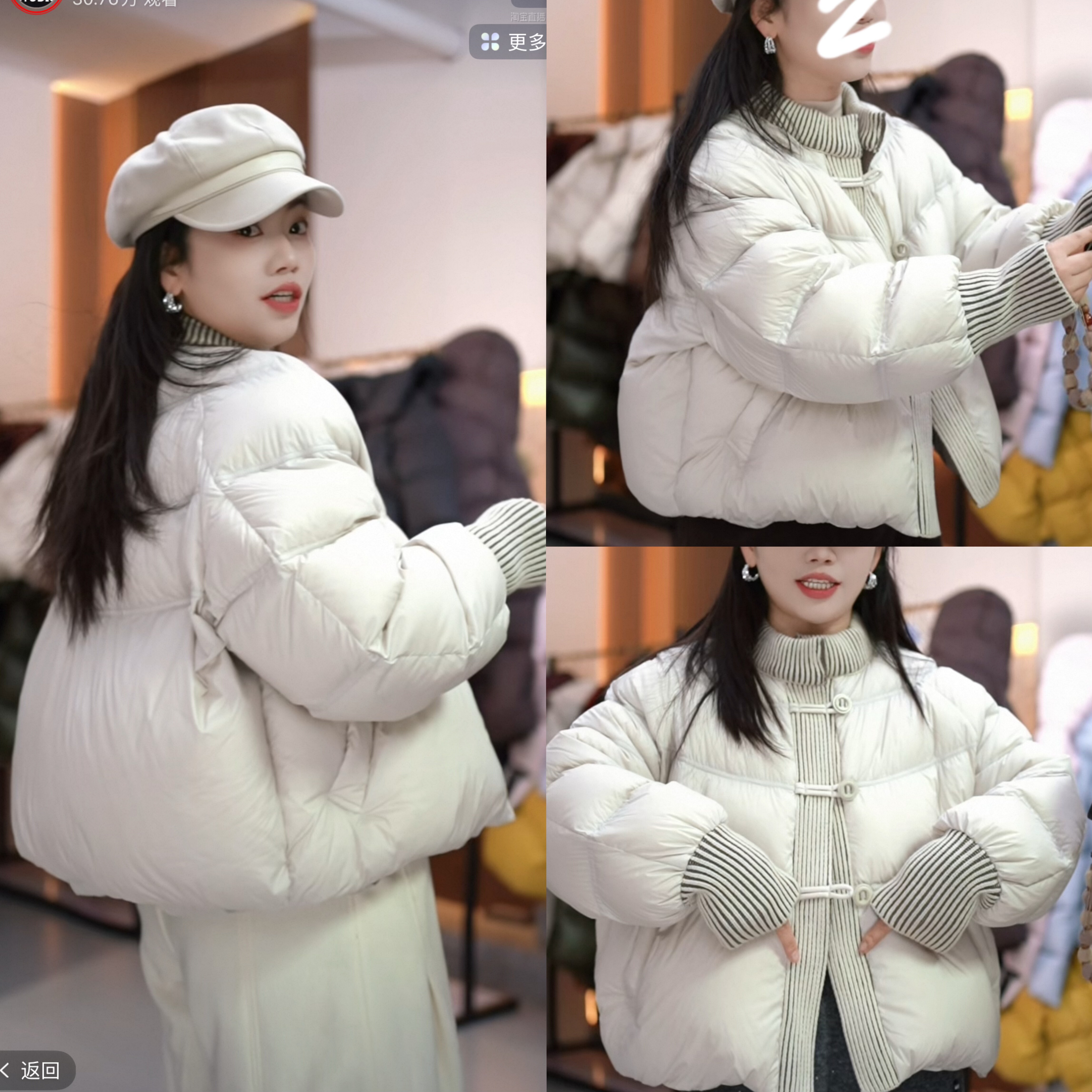 📚 95白鸭绒针织拼接领口新中式韩系羽绒服短款女国风时尚立领外套