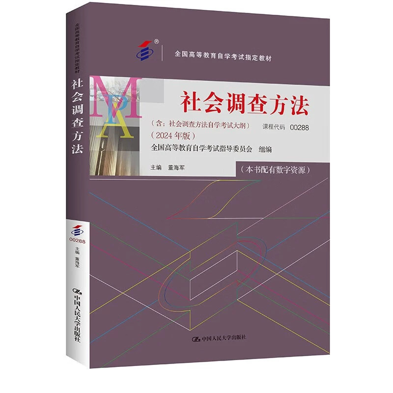 📚 成人自考00288社会调查方法自考教材配数字资源董海军2024版中国人民大学出版社9787300330297自学考试试卷自考真题一考通题库2026