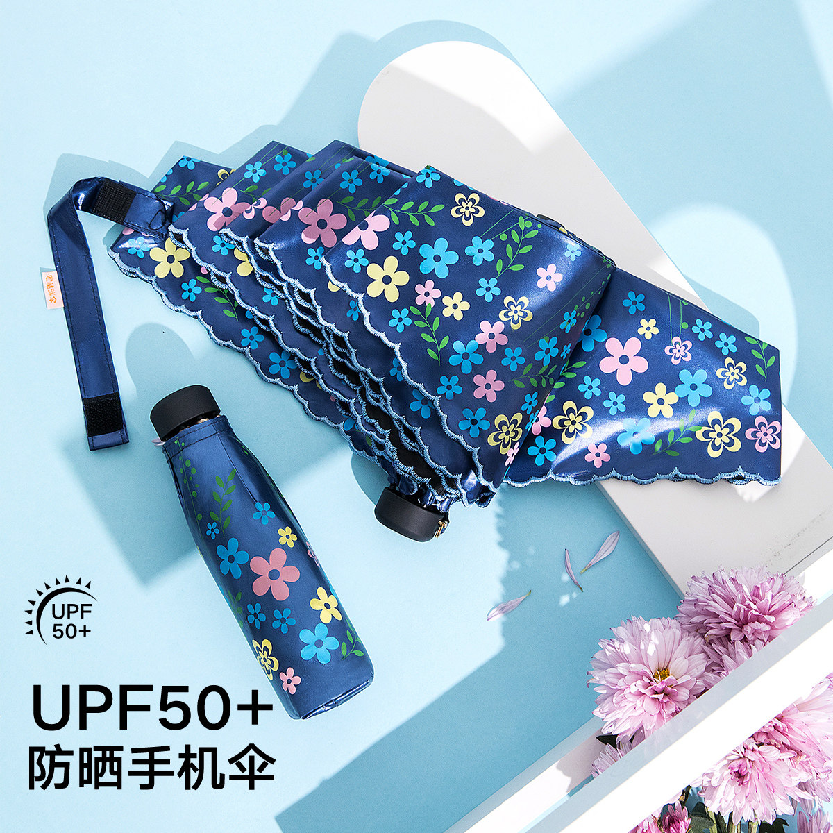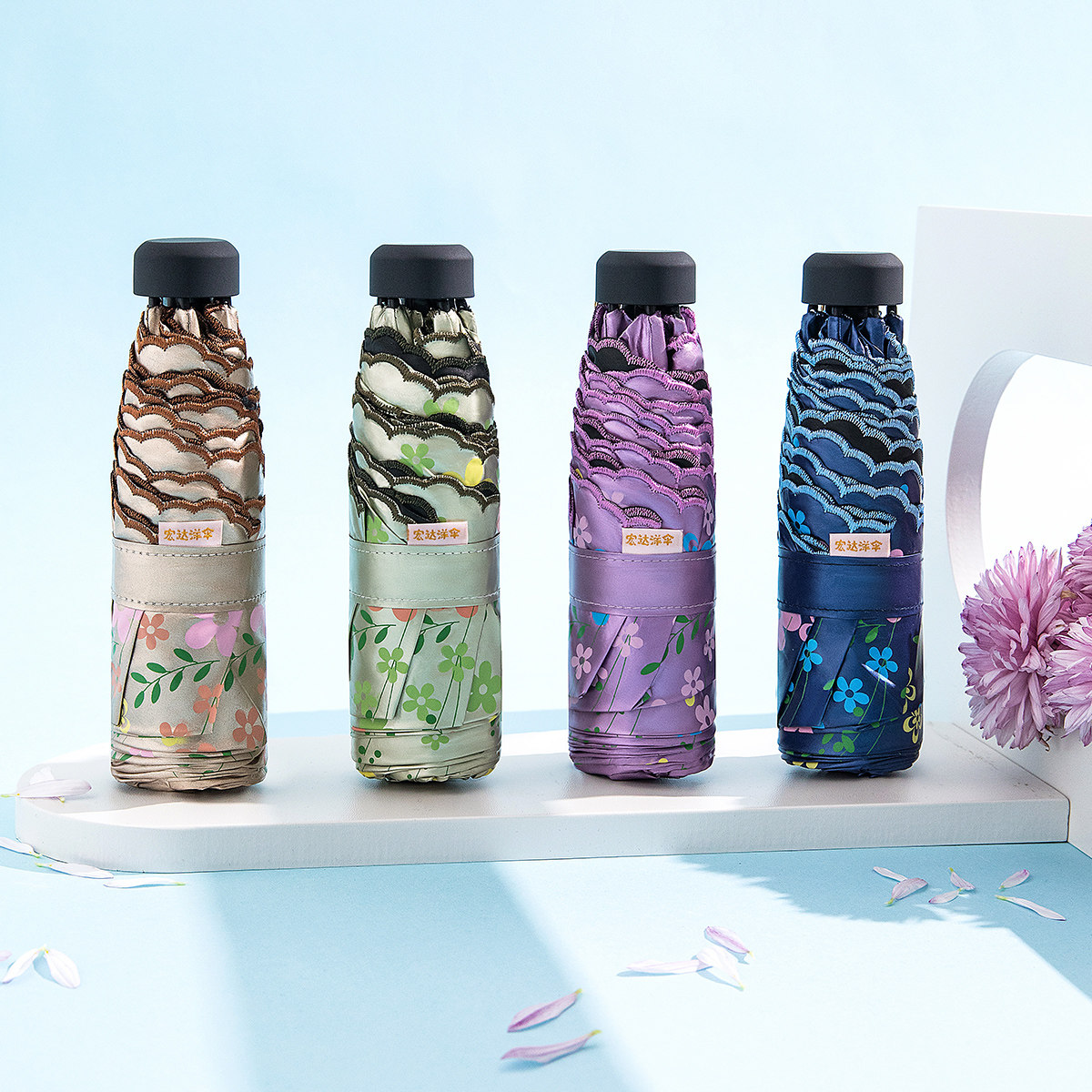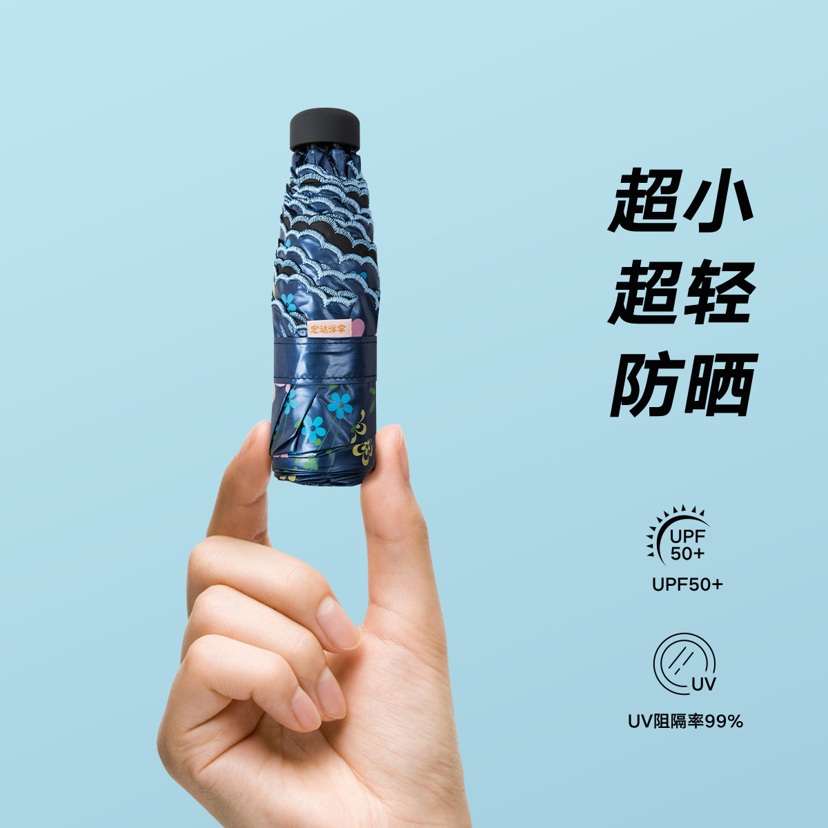 📚 宏达HONDAR小巧五折迷你轻便携遮阳伞防晒防紫外线黑胶印花太阳伞