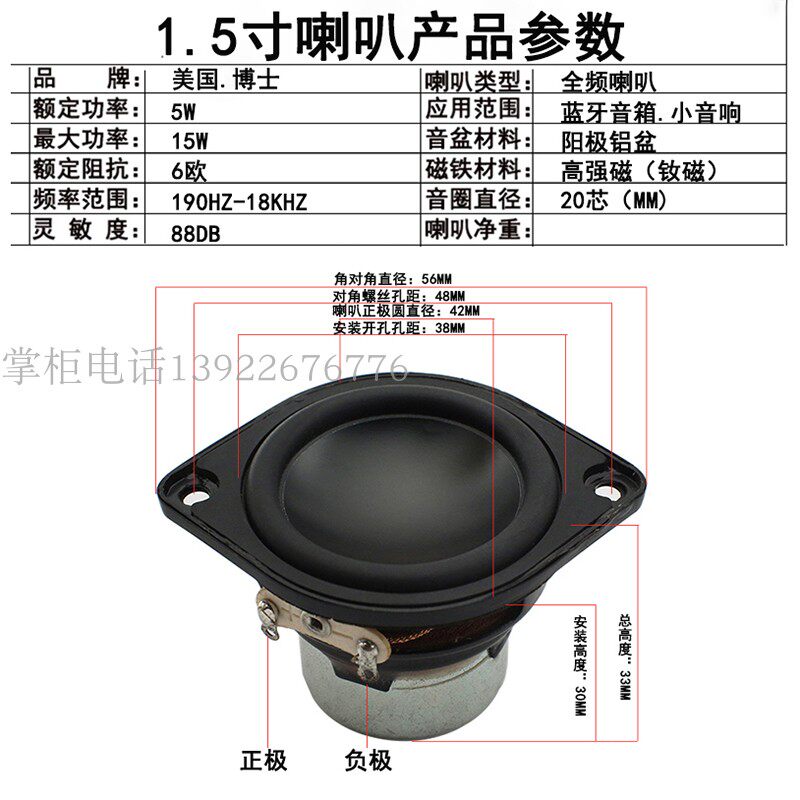 📚 美国博 1.5寸全频喇叭 哈曼代工 铝盆 长冲程 发烧级蓝牙扬声器