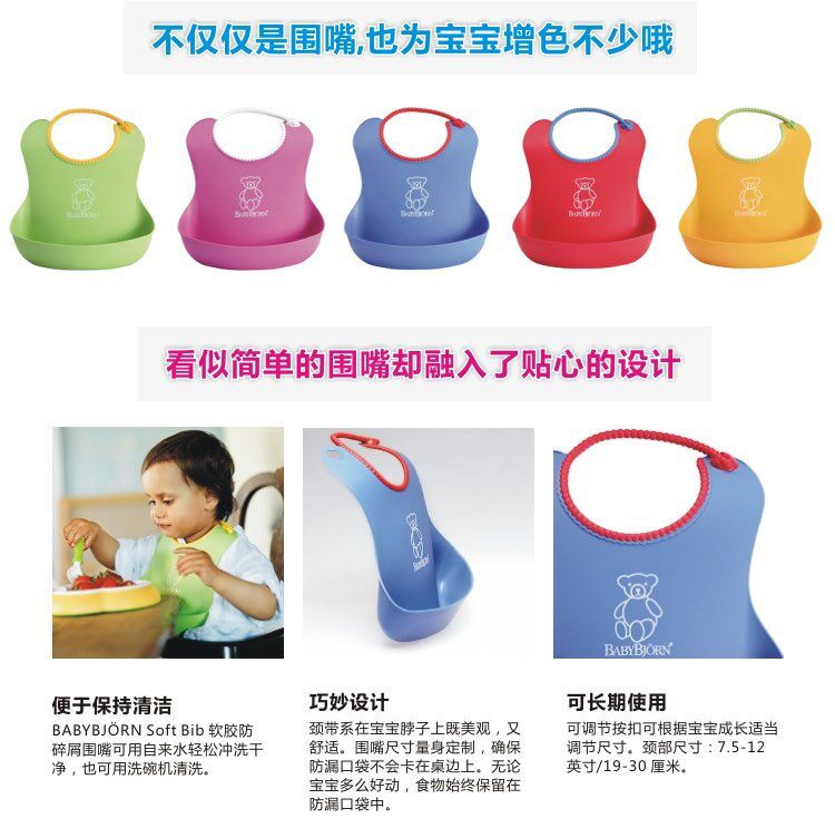 📚 老款清仓 美国BabyBjorn宝宝围嘴 婴儿防水软胶围兜 儿童食饭兜