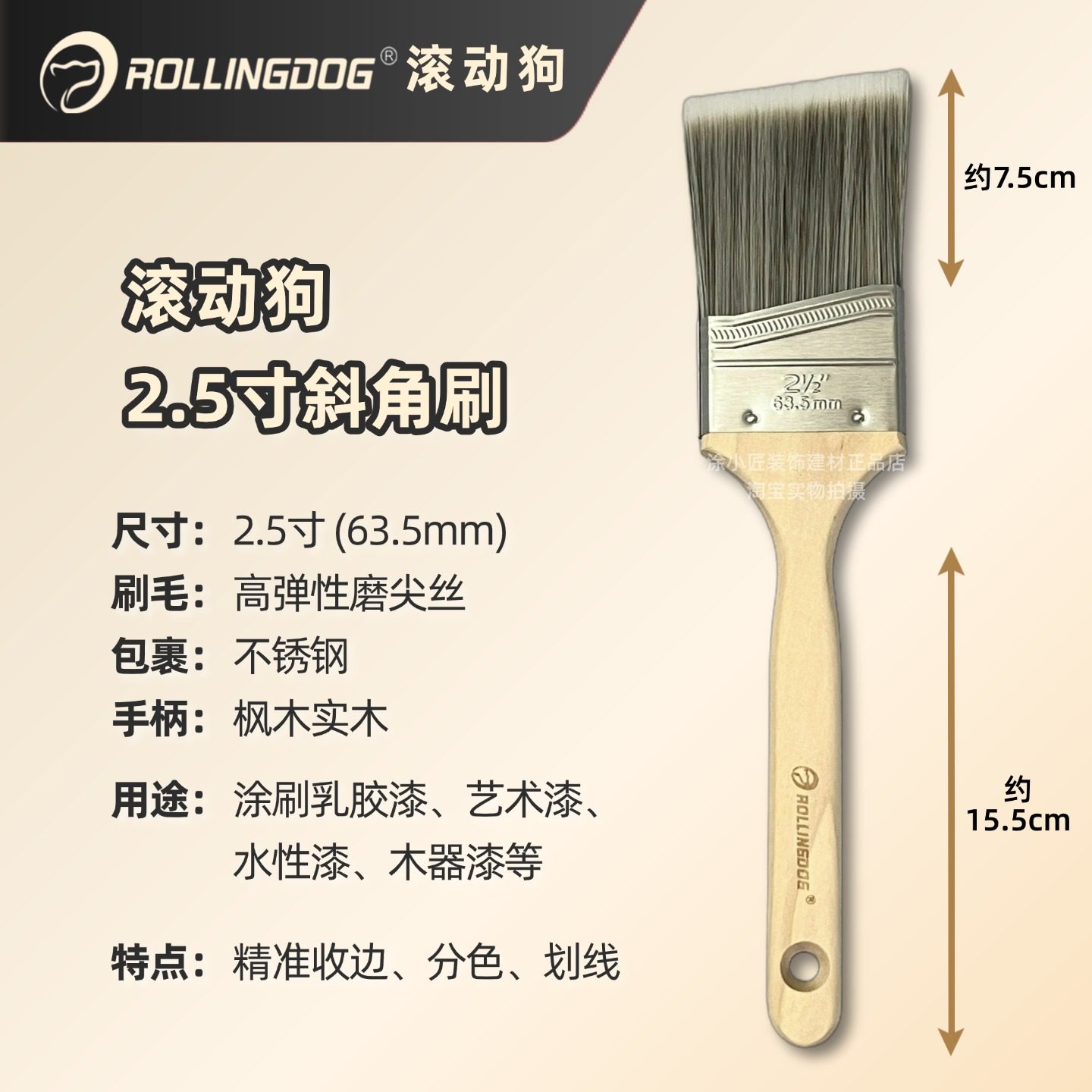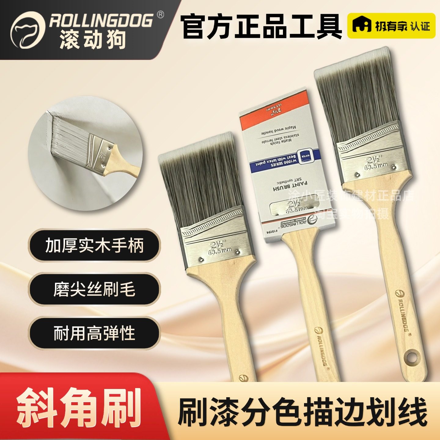 📚 滚动狗斜角刷艺术漆乳胶漆分色划线修边磨尖丝木柄斜角油漆刷2.5