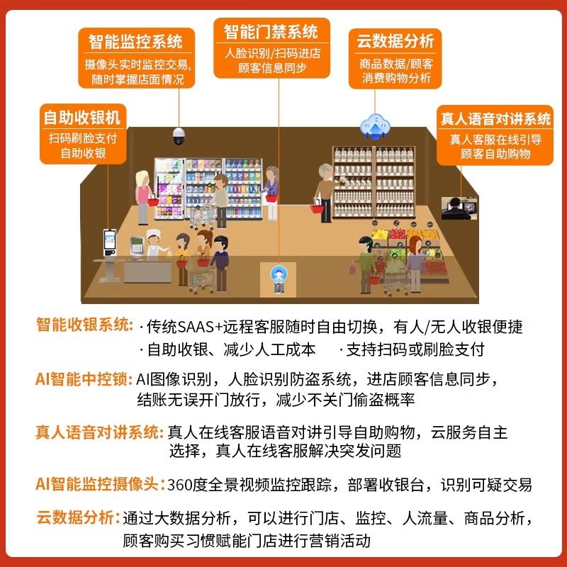 📚 爱宝迎客无人超市便利店设备24小时自助购物云值守收银系统智能售货商店新零售扫码收银一体机全国可上门安装