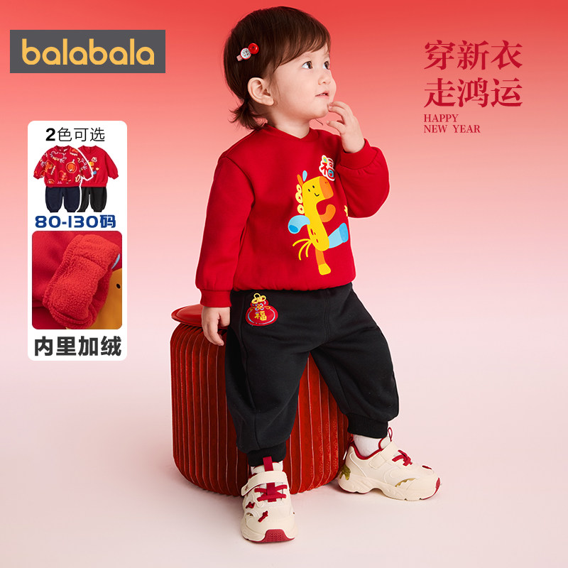 🎉冬天来临,新年将至,一场温暖的童装风暴来啦!今天要给大家种草的是巴拉巴拉宝宝运动套装男童女童加绒红色拜年服秋冬款童装,券后价仅需176.9元,让人心动不已!
