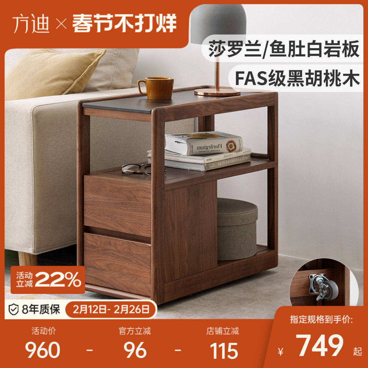 📚 方迪实木沙发边几家用黑胡桃角几客厅可移动岩板茶几小户型窄边桌