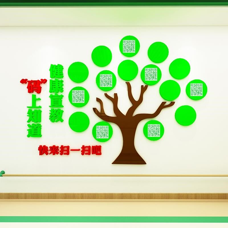 📚 医院健康宣教树二维码扫一扫科室走廊背景墙面装饰护士站文化墙贴