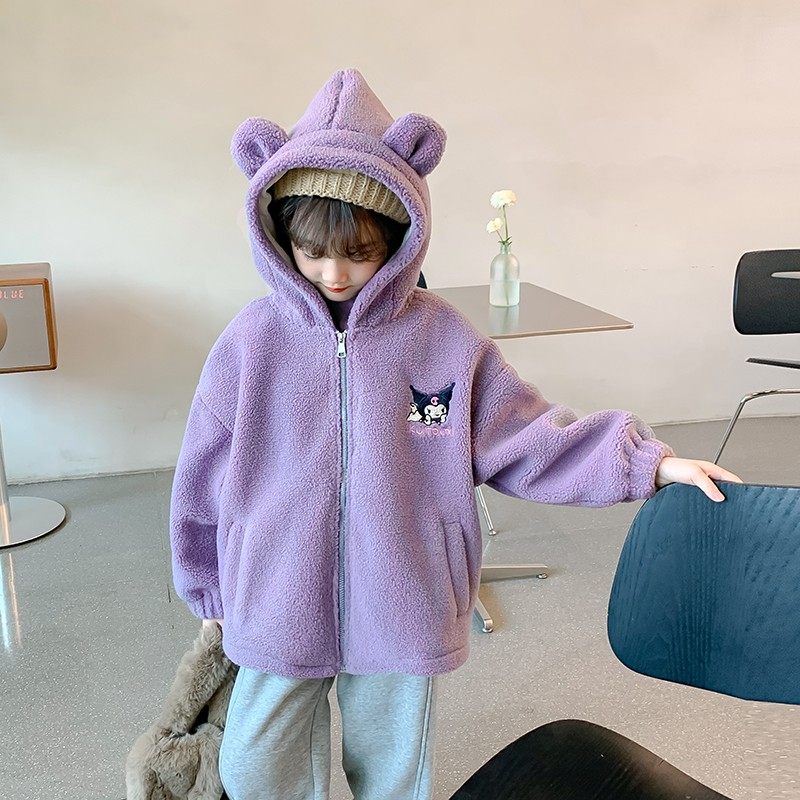 📚 女童加绒外套冬季2025新款加厚儿童摇粒绒连帽衣服女孩冬装毛毛衣