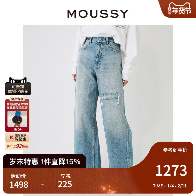 📚 白鹿同款 MOUSSY 秋季新品个性磨破阔腿裤牛仔裤 028HS411-0000