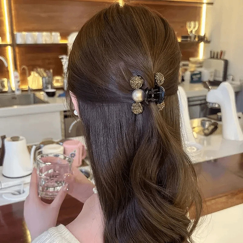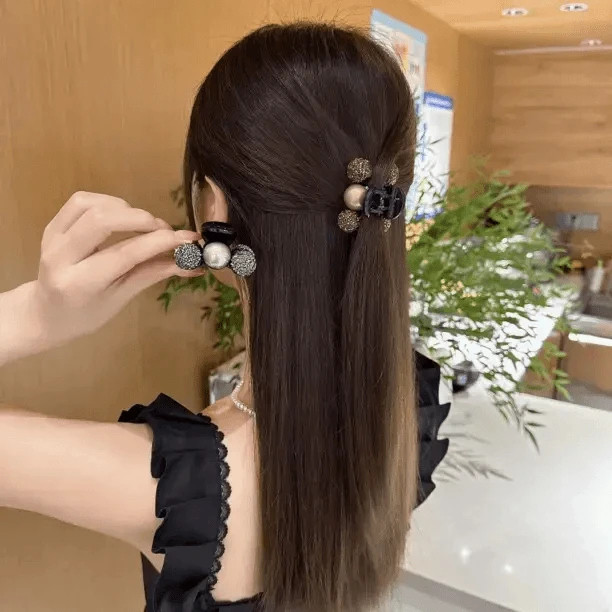 📚 高级感珠子小抓夹女2025新款后脑勺发夹高马尾高端半扎发夹子头饰