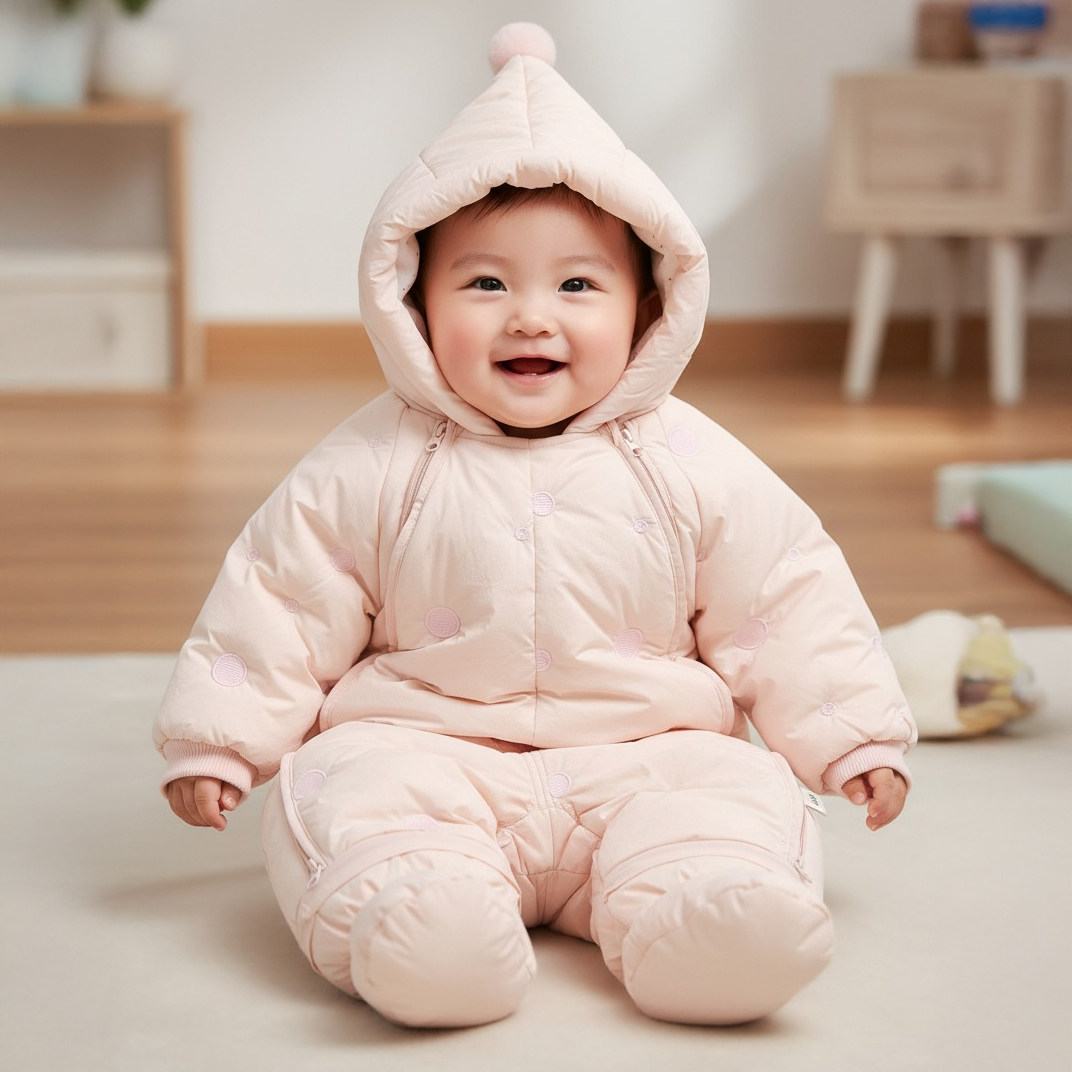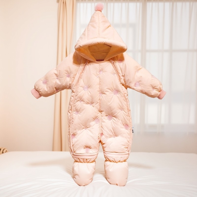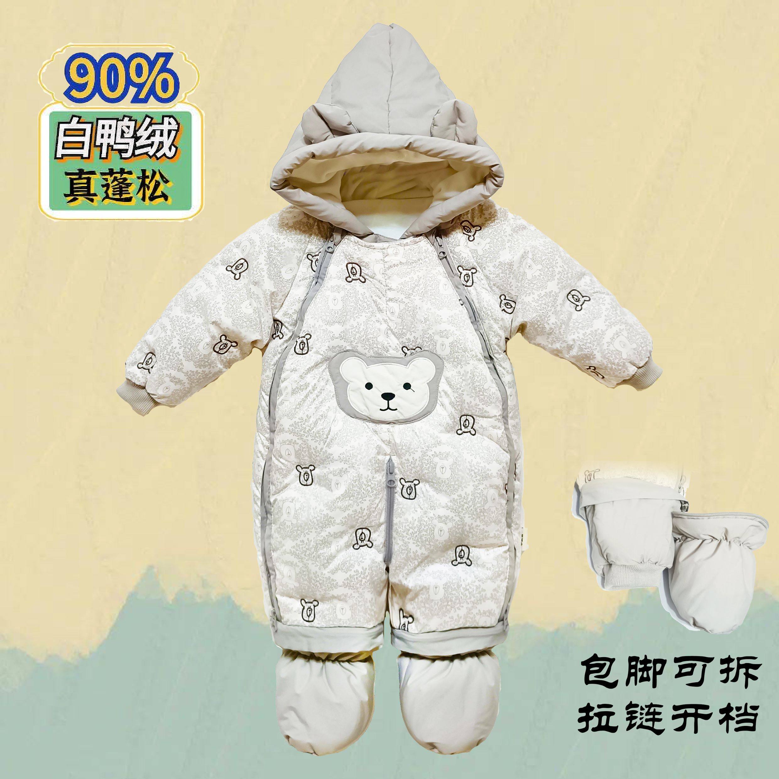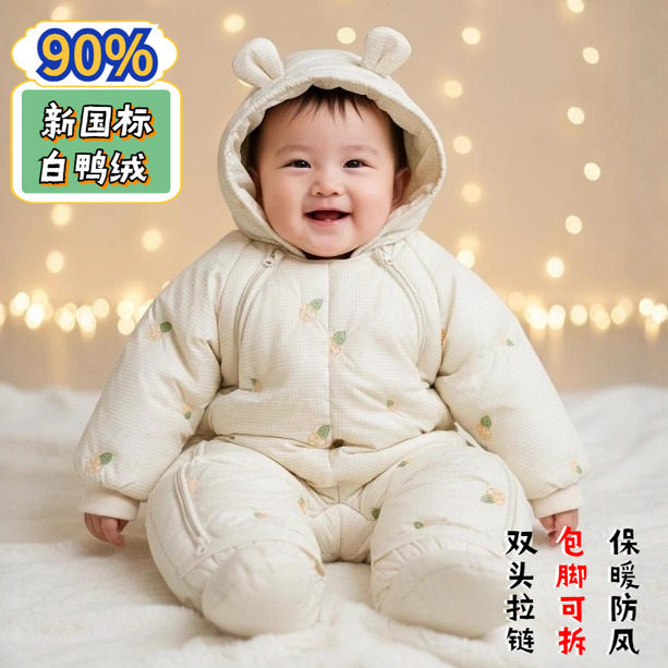 鸭绒连体衣加厚新生儿羽绒服