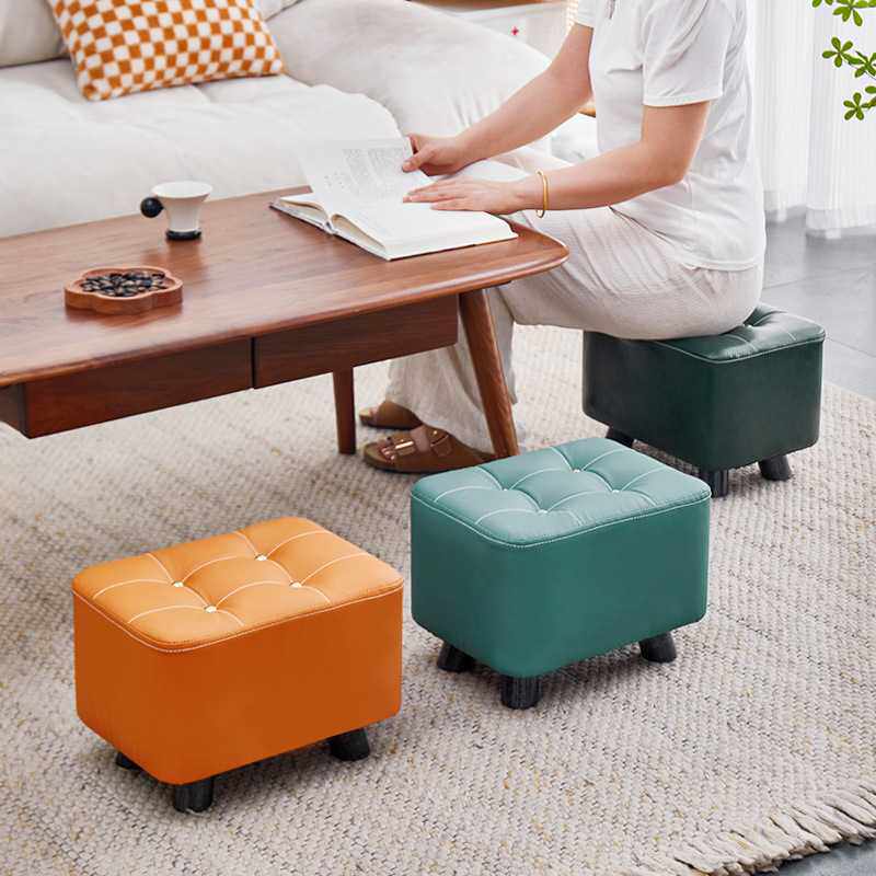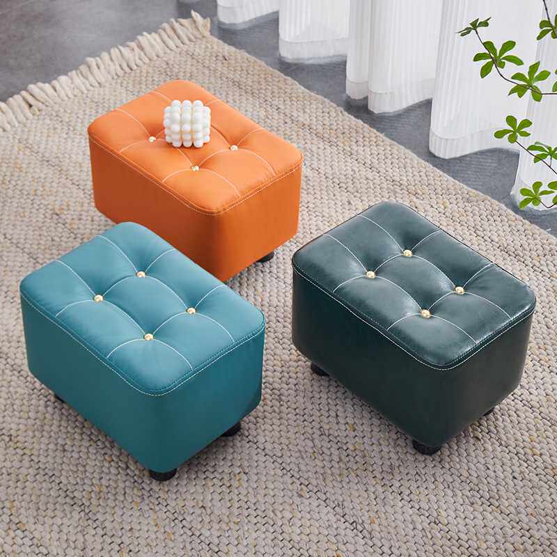 📚 新款直销长款皮艺小凳子家用门口换鞋ins风脚凳客厅茶几凳矮凳简