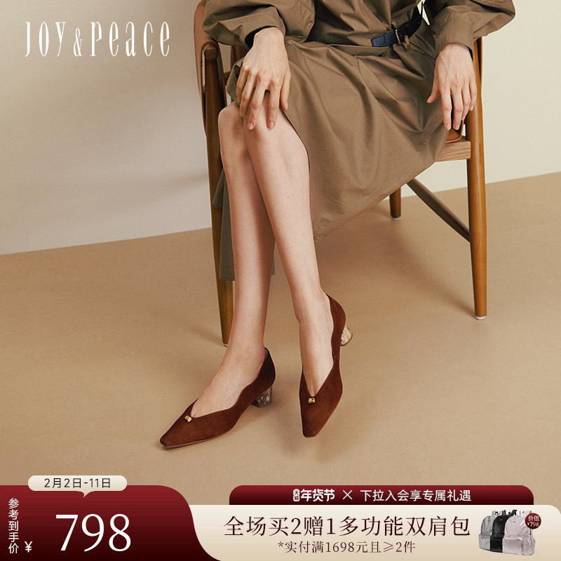 📚 真美诗点金石秋季新款羊皮波浪曲线气质通勤不累脚粗跟单鞋女