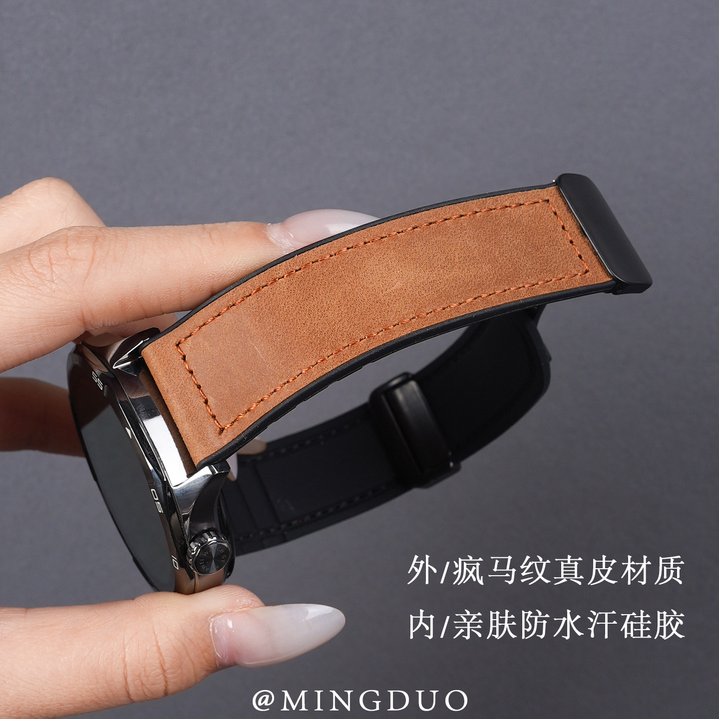📚 适用OPPOWatchX2手表4pro表带男款watchs疯马纹皮硅胶x2mini透气智能3pro真皮磁吸se高级新款Sport一加女腕带