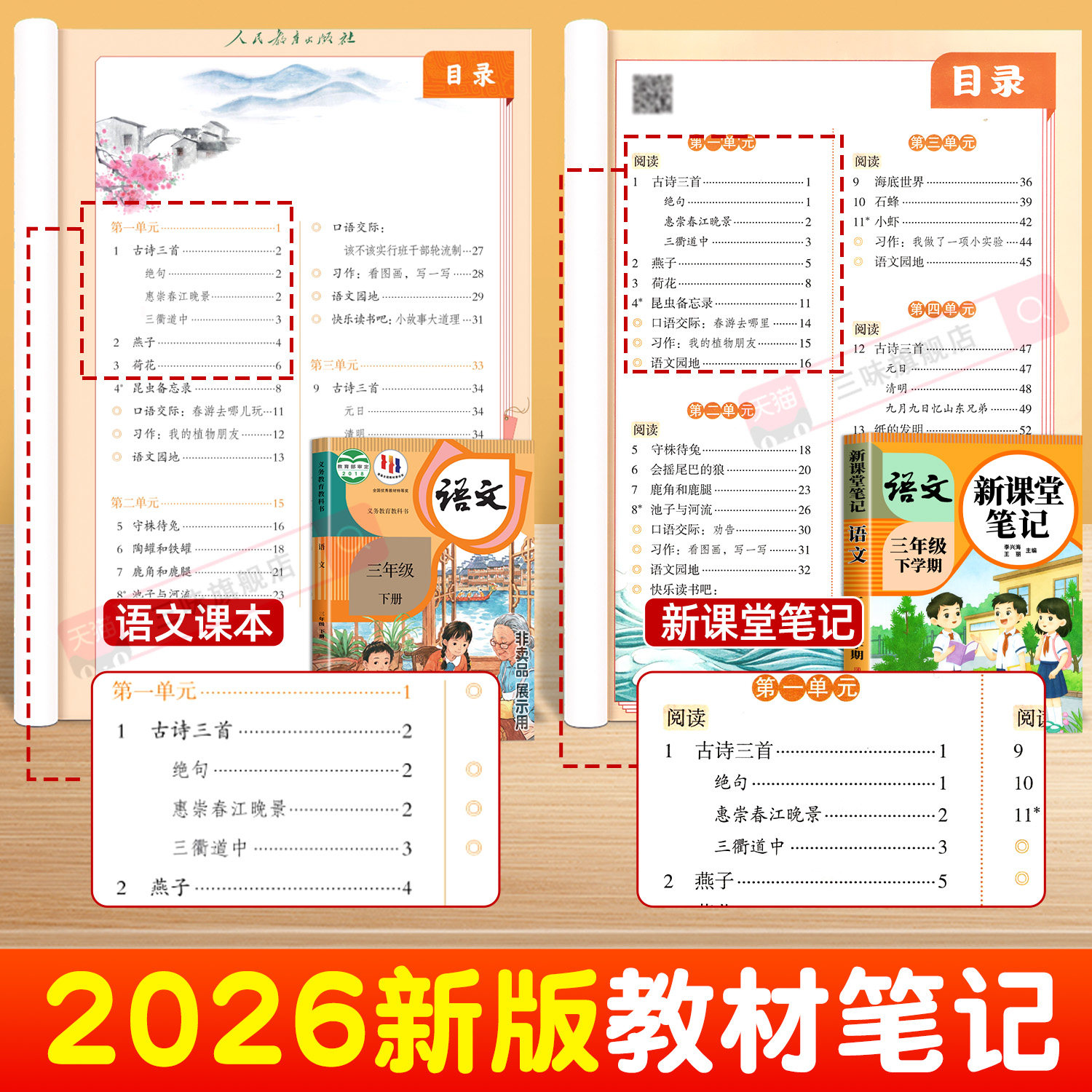 📚 2026年春新版小学课堂笔记一二三四五六年级上下册语文数学英语课本全解同步人教版四下随堂教材预习资料25秋北师大译林苏教外研版