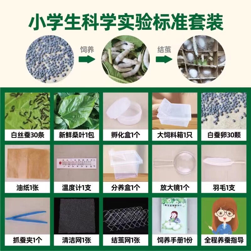 📚 彩色蚕宝宝小学生养蚕套装蚕卵饲养盒全套工具12345龄金丝嫩桑叶