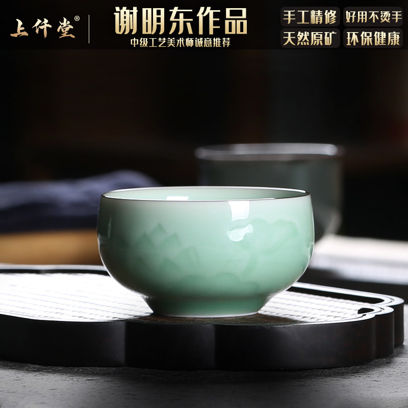 📚 青瓷单个品茗杯主人杯功夫茶具普洱茶杯套装单杯陶瓷刻花茶碗茶盏