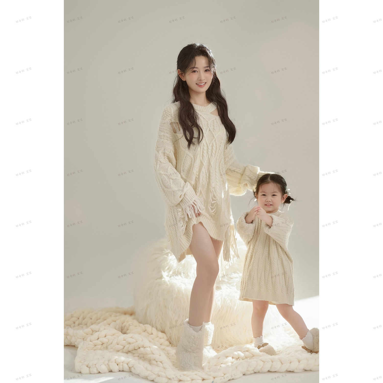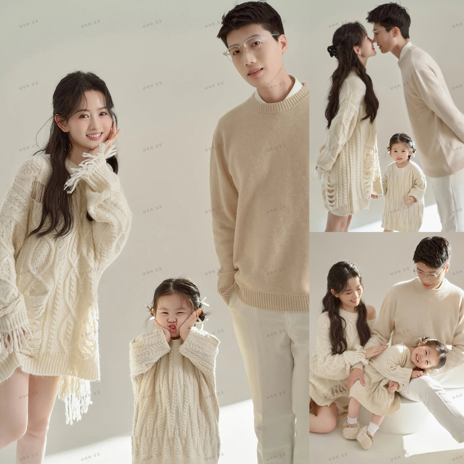 📚 2026新款影楼全家福一家三口亲子装新年拍照主题麻花毛衣摄影服装